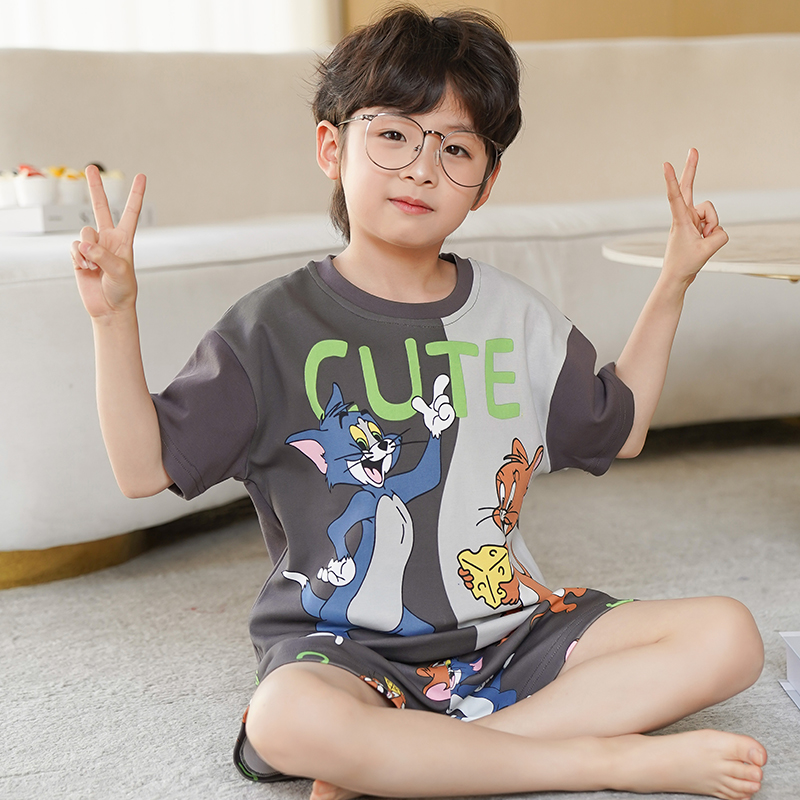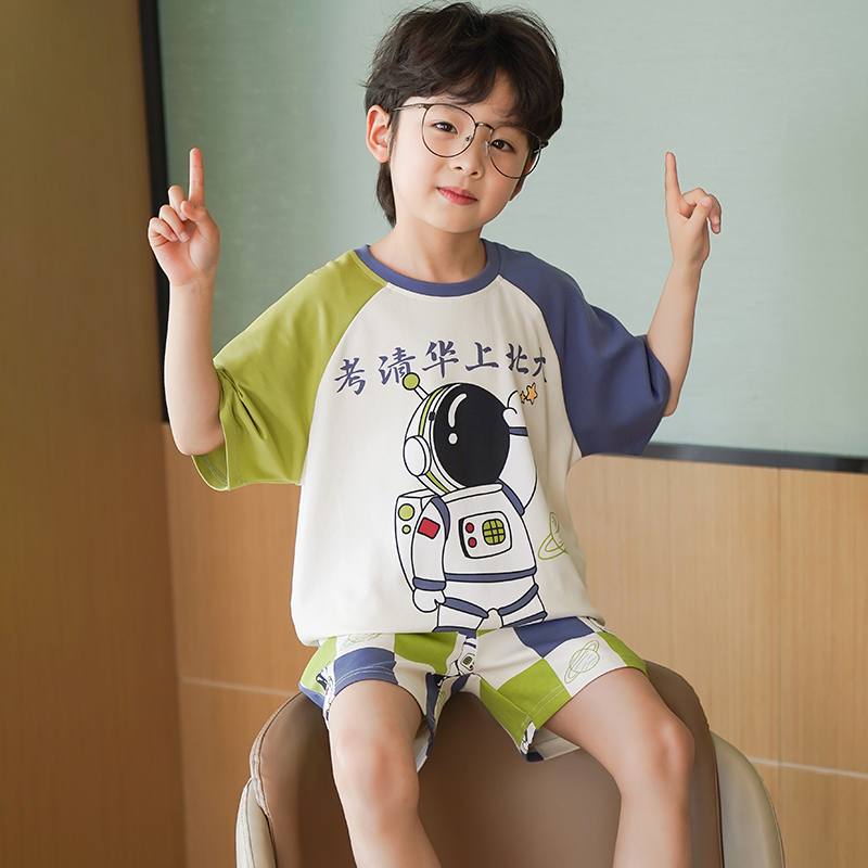 男童睡衣夏季纯棉短袖薄款儿童男孩读书人卡通大童家居服夏天套装
