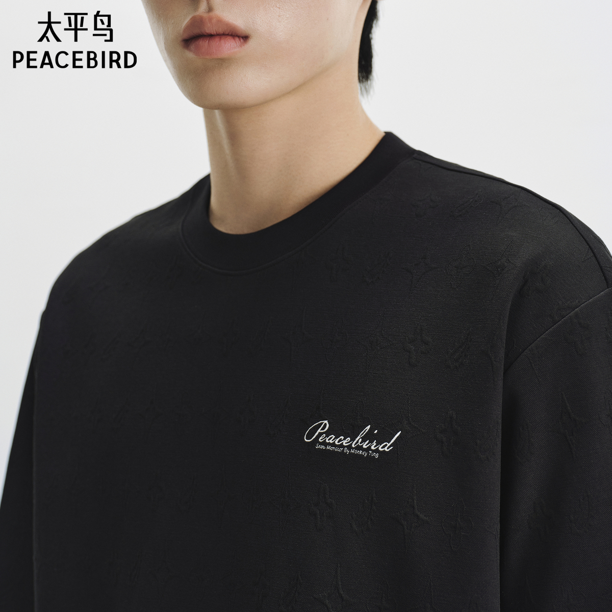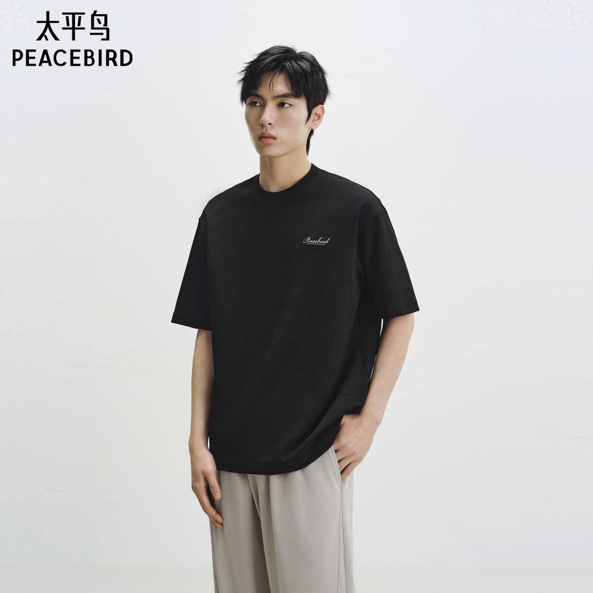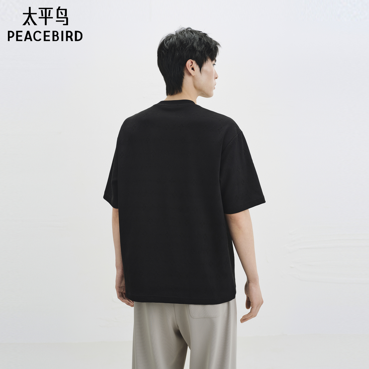 【提花】太平鸟男装纯色t重磅短袖T恤2025夏新款刺绣白T宽松体恤S