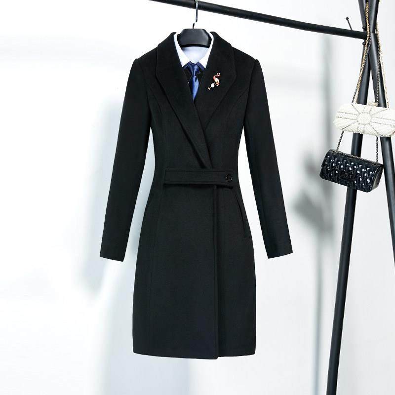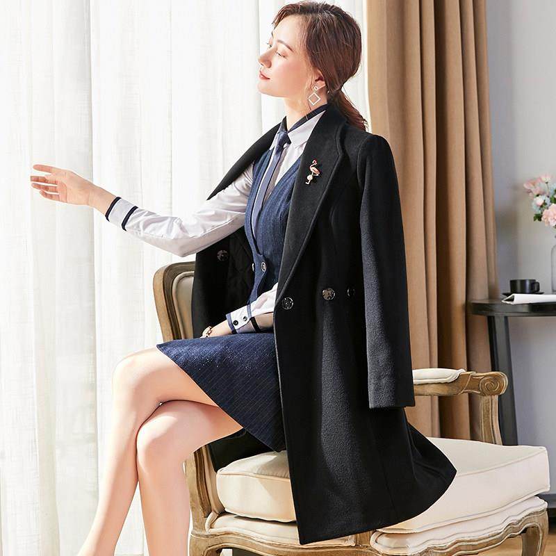 高端职业羊毛呢外套女中长款房产售楼部工作服加厚工装呢子大衣冬