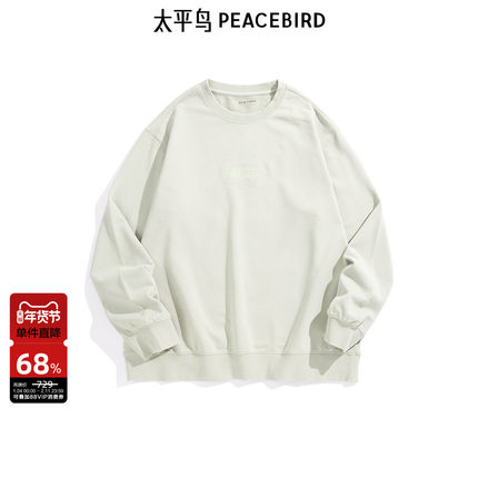 太平鸟男装圆领刺绣图案卫衣秋季纯色宽松上衣潮牌外套