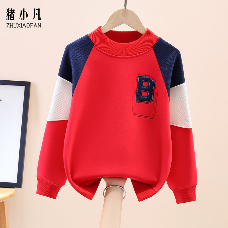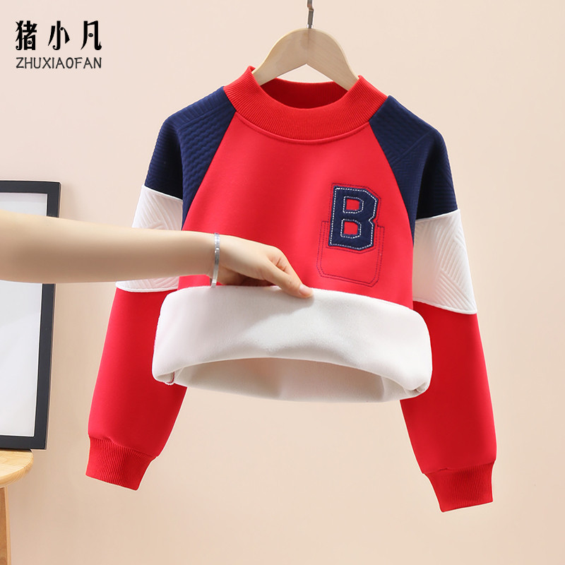 2025蛇年男童红色卫衣秋冬新款一体绒中大童打底衫加绒加厚拜年服