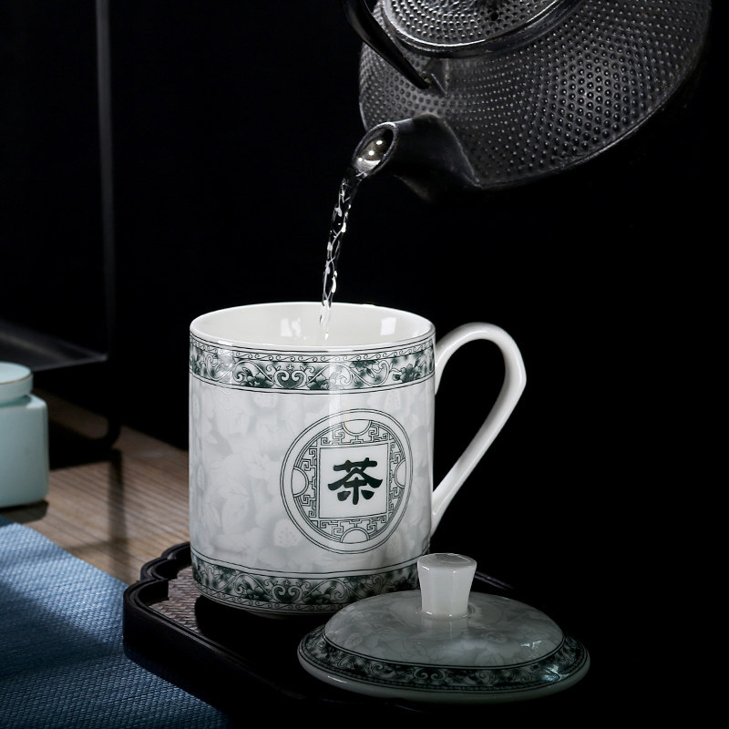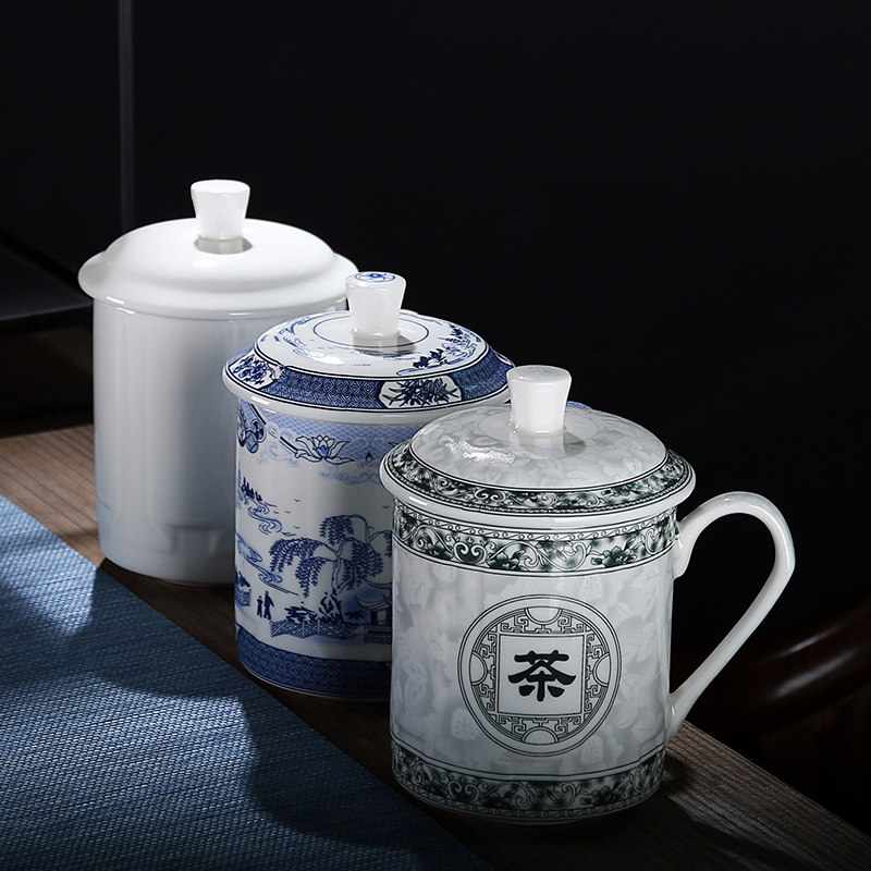 青花瓷陶瓷茶杯老板杯大容量水杯