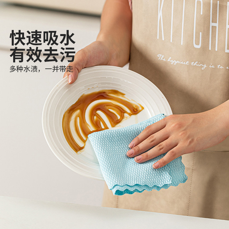 摩登主妇鱼鳞抹布无痕不留水渍吸水不易掉毛厨房清洁擦玻璃洗碗布