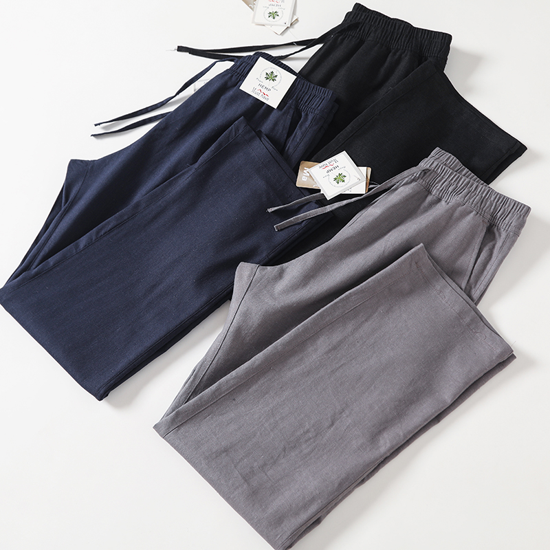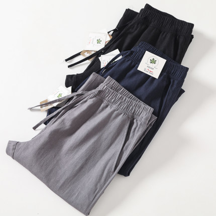 凉爽舒适吸湿透气亚麻混纺休闲裤