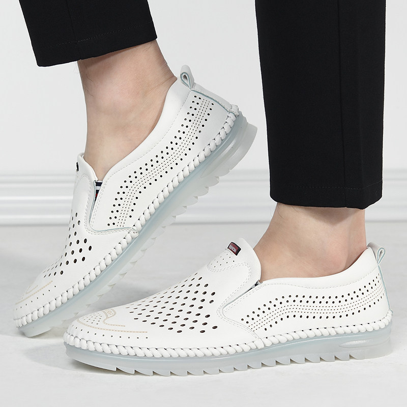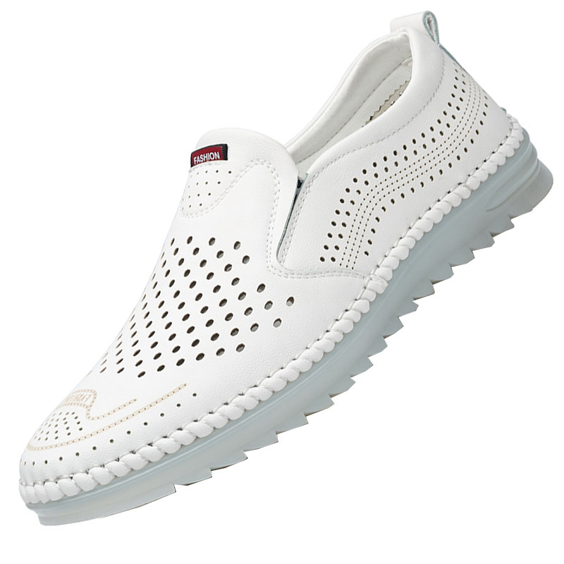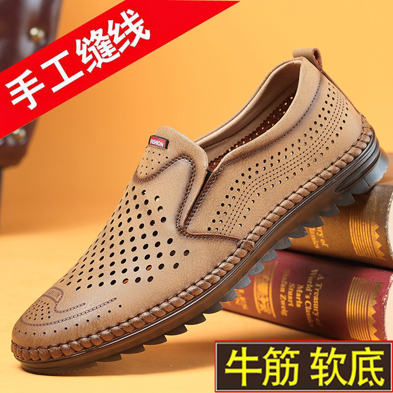 2021夏季新款白色牛筋底凉鞋男休闲真皮洞洞鞋镂空透气软底凉皮鞋