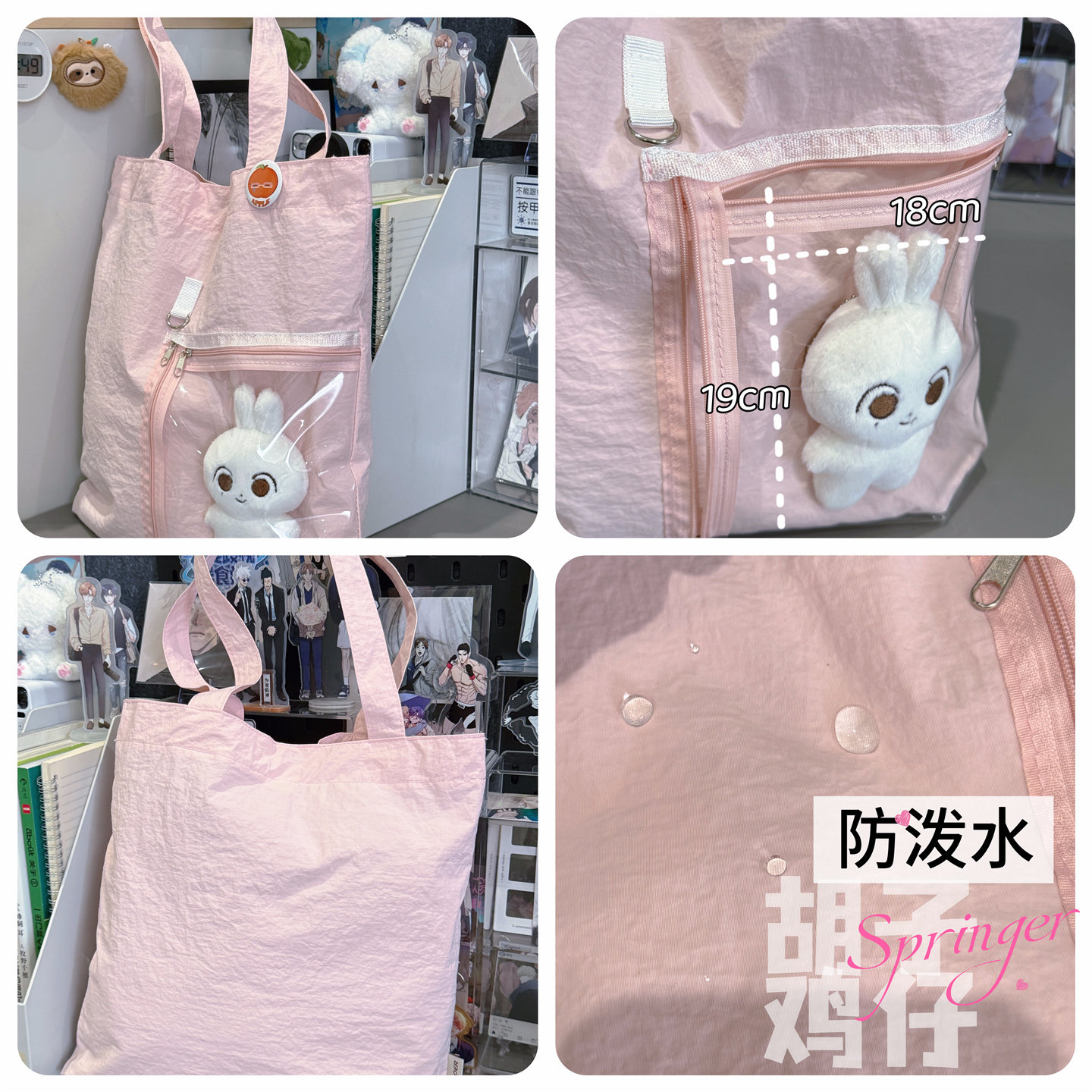 透明口袋设计纯色百搭手提单肩包