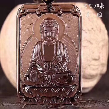 天然冰种黑曜石大日如来吊坠 属羊属猴守护神 生肖羊猴本命佛