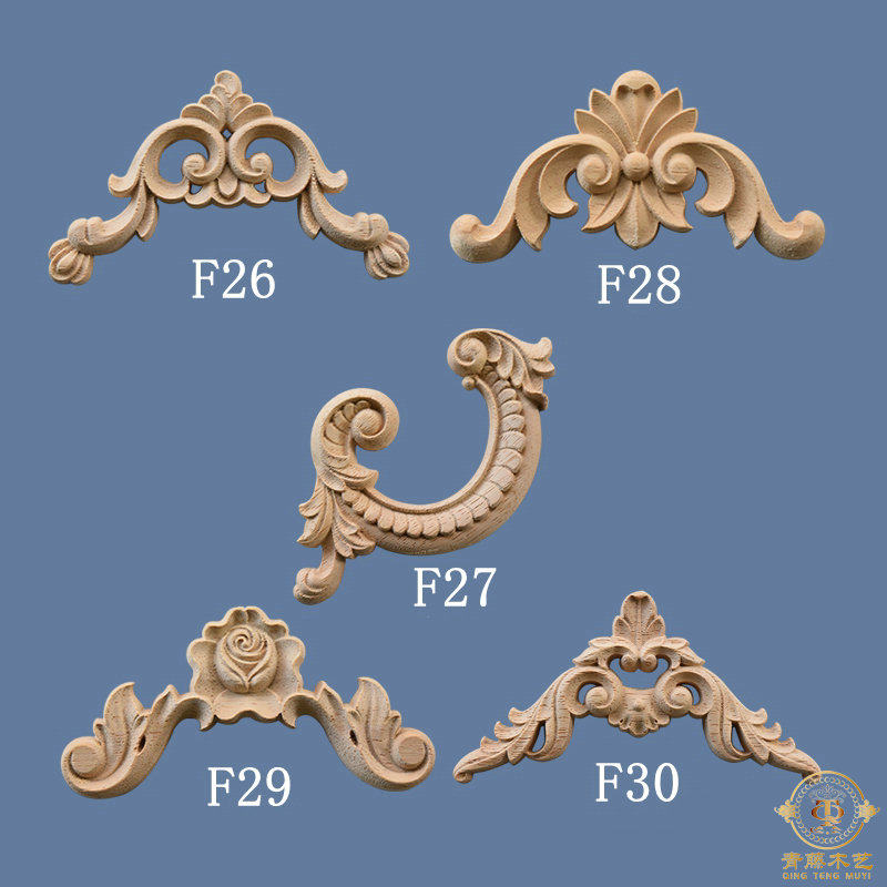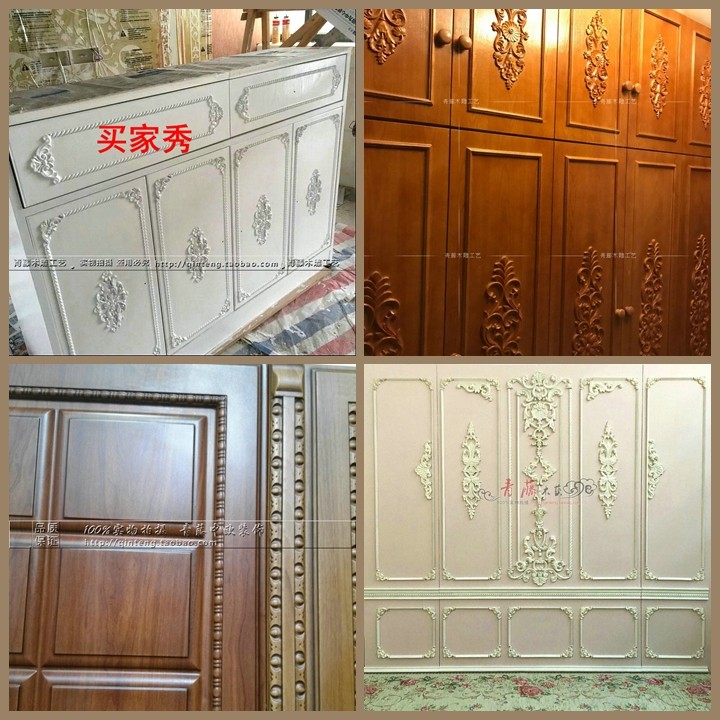 欧式实木角花东阳木雕中式仿古橱柜背景墙护墙板柜门雕花装饰贴花