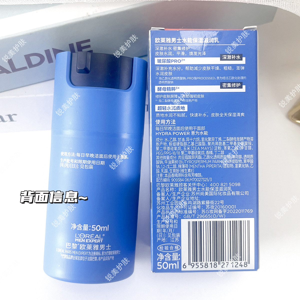 欧莱雅男士水能保湿滋润乳50ml 补水不油腻擦脸油润肤乳护肤品