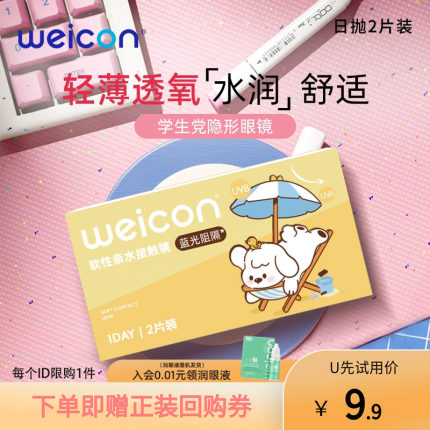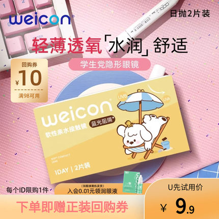 【天猫U先】卫康防蓝光学生党隐形眼镜日抛近视水凝胶水润新手