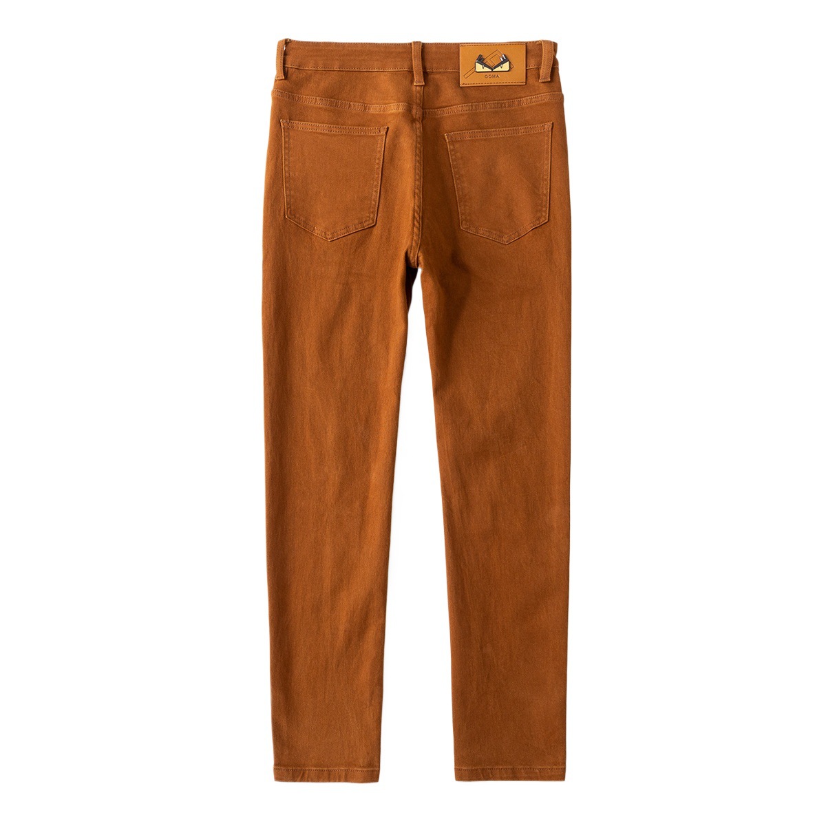 高端黄棕咖啡色牛仔裤男士2025秋季男裤潮流弹力修身小脚长裤子
