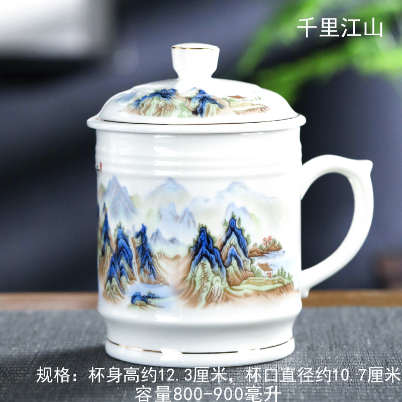 景德镇陶瓷器茶杯水杯定制大容量茶杯带盖大号霸王杯1000毫升杯子