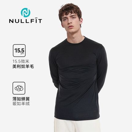 NULLFIT美利奴羊毛速干衣健身运动男式户外长袖防晒T恤衫超轻透气