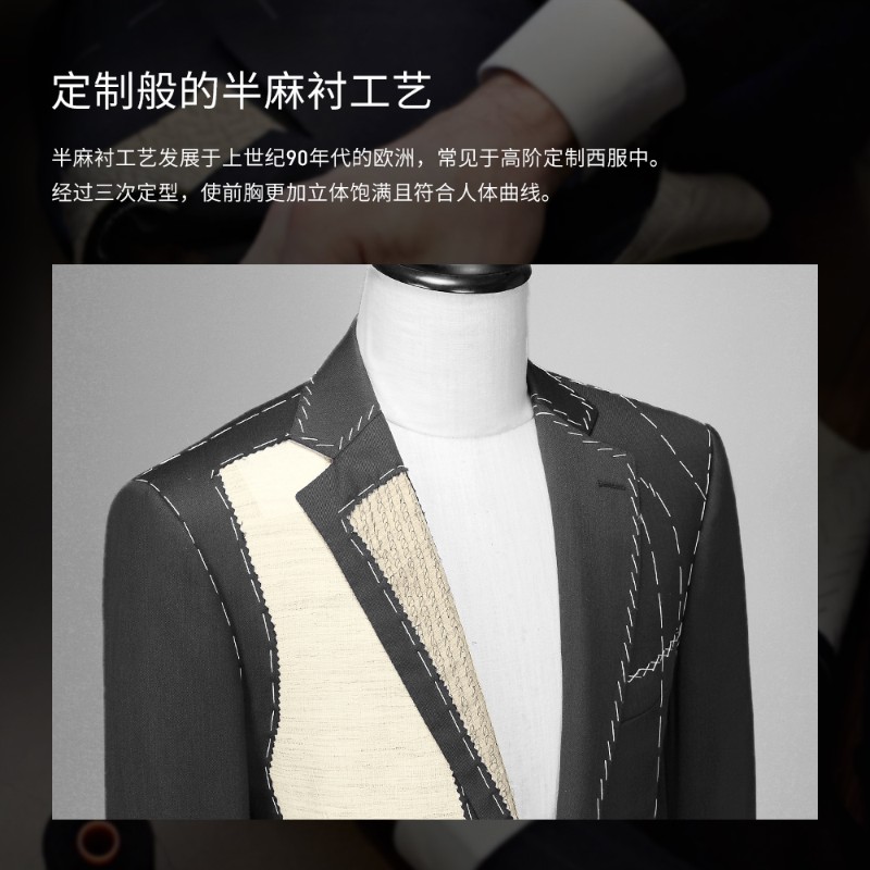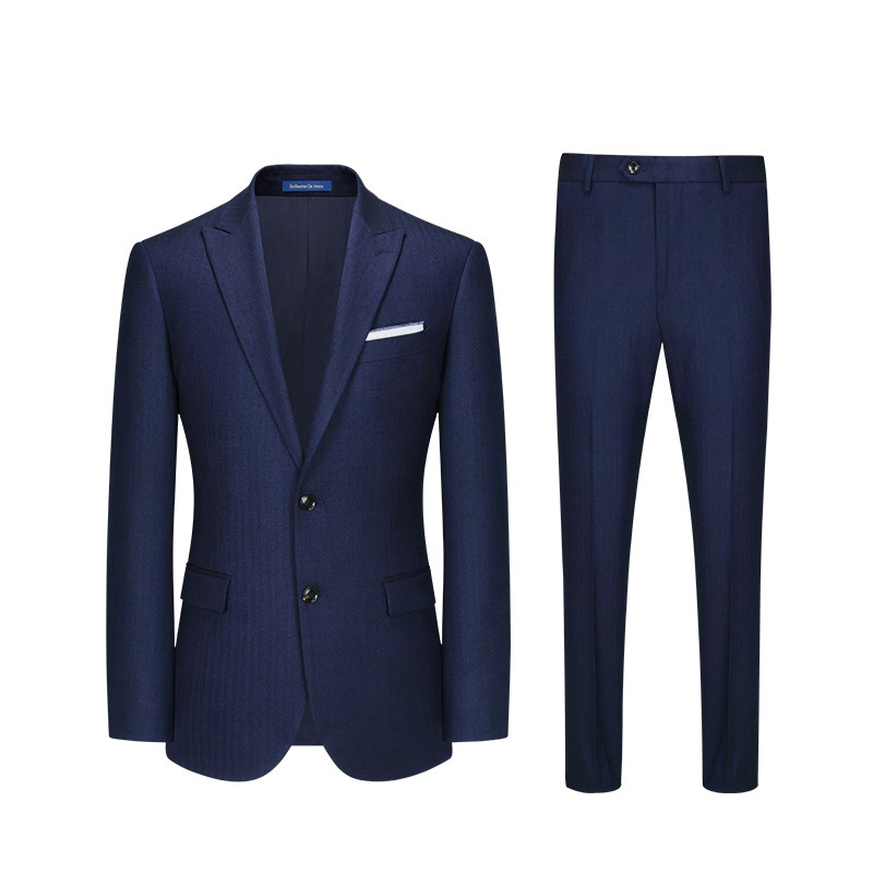 【澳嘉】纯羊毛西装男套装蓝色正装男士修身新郎结婚礼服定制西服