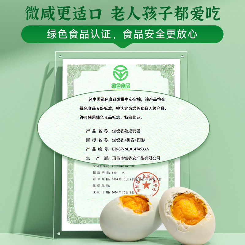 溢流香减盐不咸的熟咸鸭蛋相对淡盐薄盐轻盐开袋即食鄱阳湖区特产