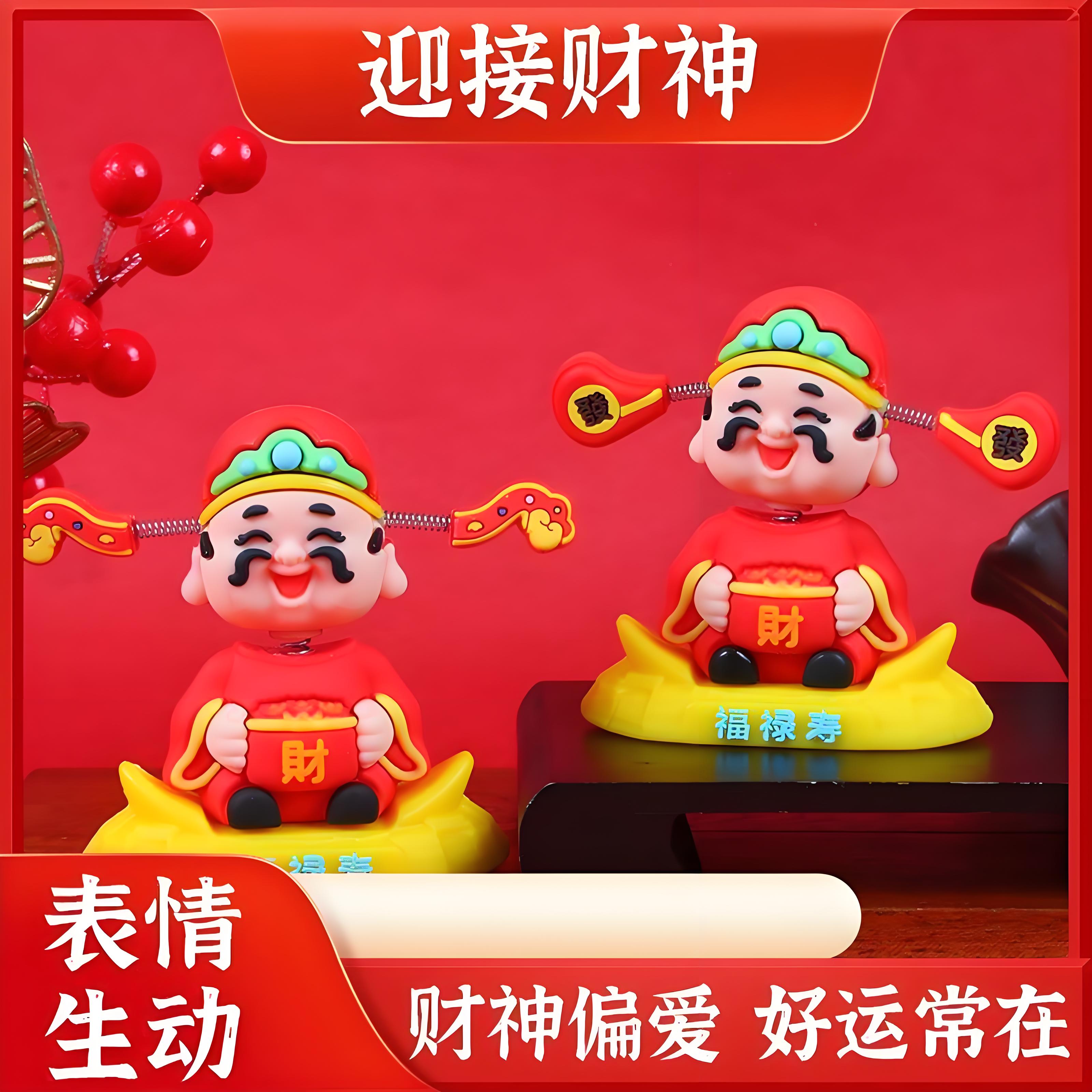 2025新款摇头财神爷汽车摆件可爱卡通招财装饰中控台高级车载饰品