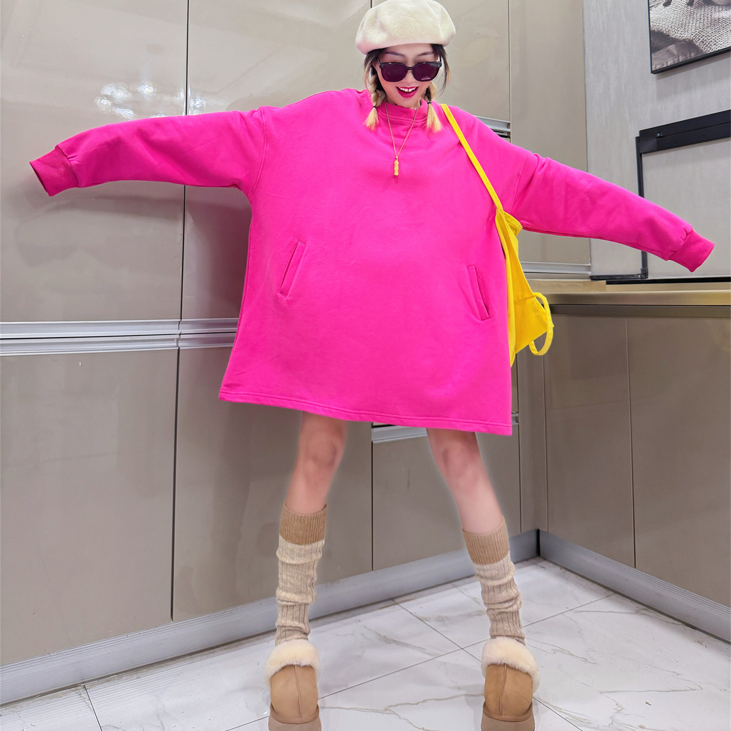 加绒加厚口袋秋冬季打底卫衣女