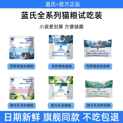 蓝氏猫粮试吃猎鸟乳鸽荒野猎兔冻干烘焙成猫幼猫全阶段主粮小袋装