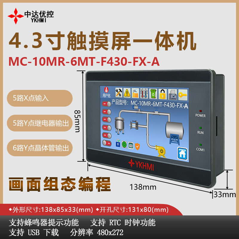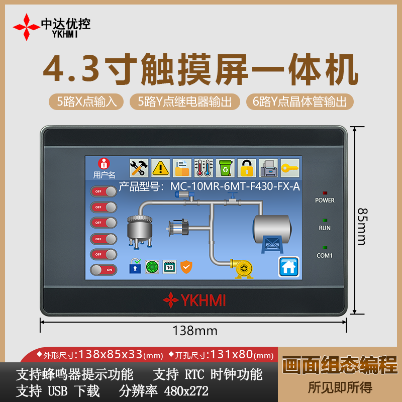 中达优控4.3寸触摸屏plc人机界面