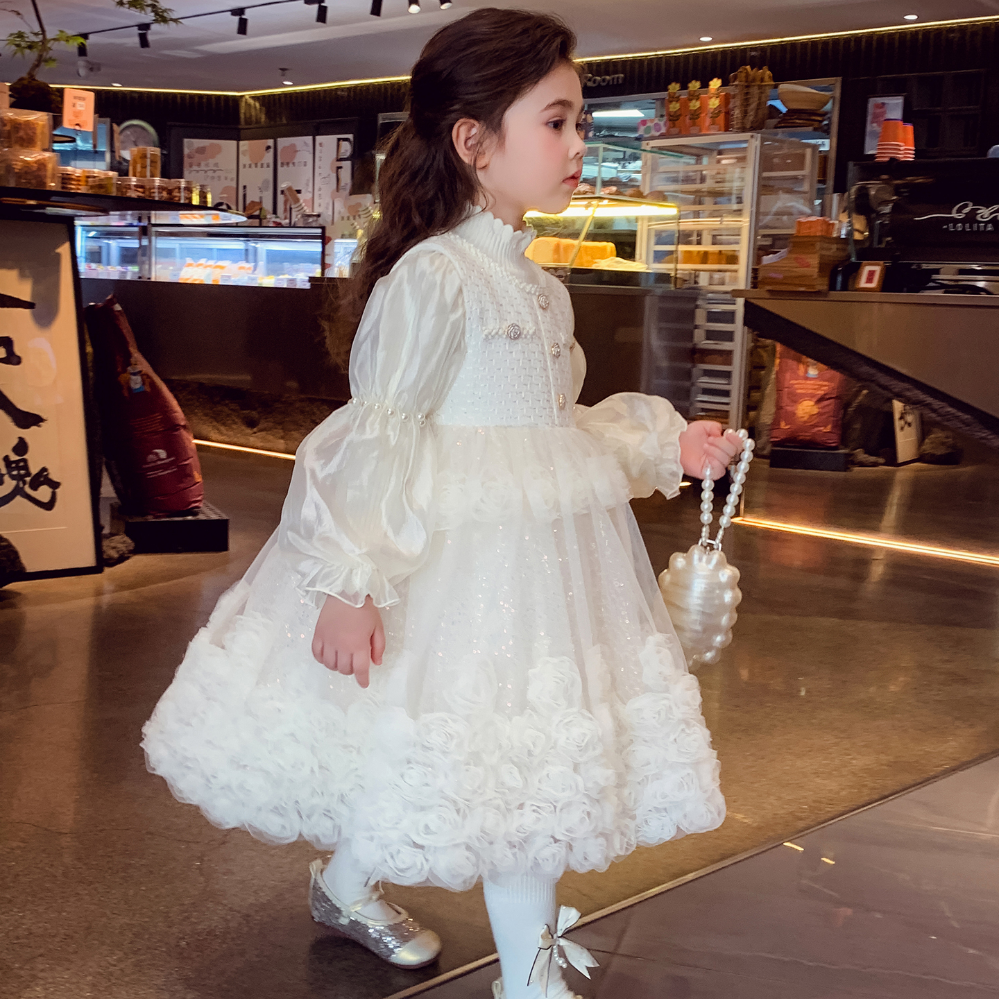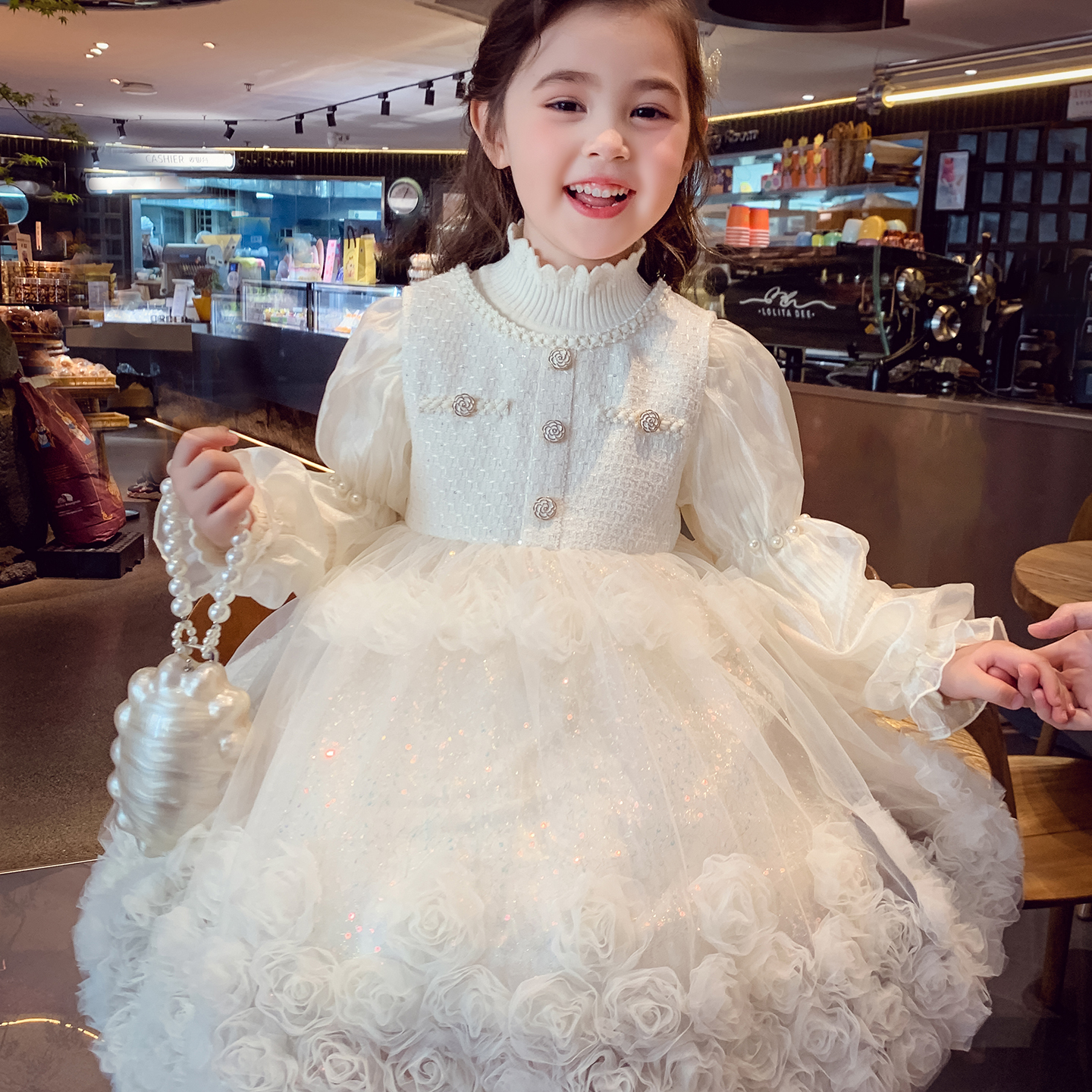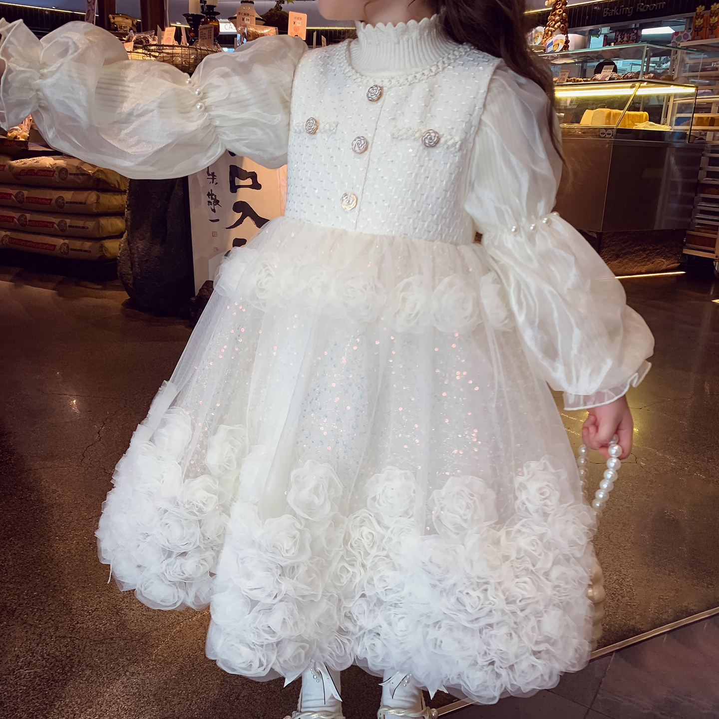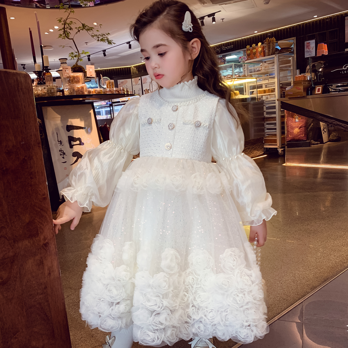 米米哈罗女童公主裙冬装2025新款小女孩背心裙儿童加绒网纱连衣裙