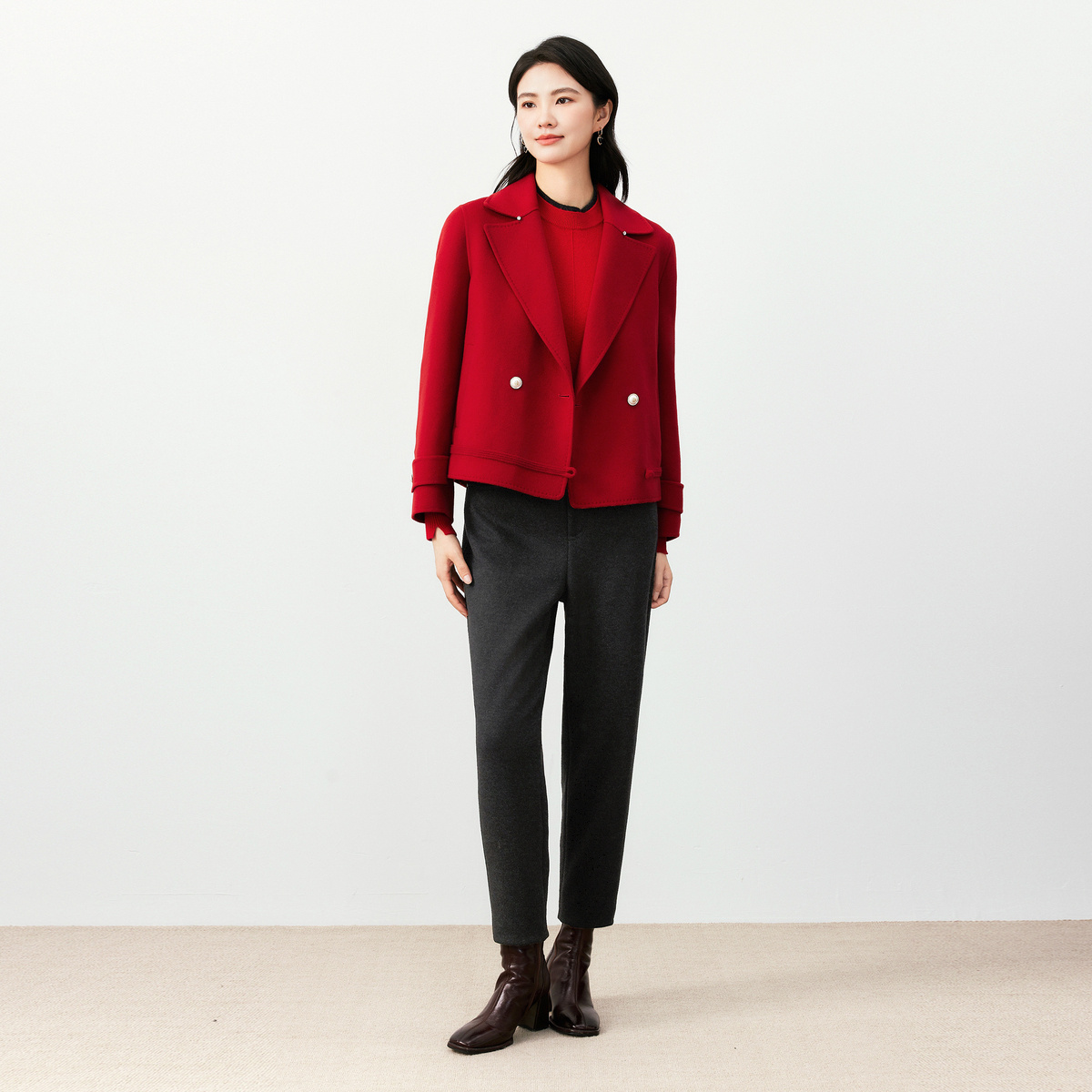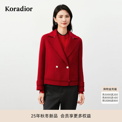 珂莱蒂尔冬季款毛呢大衣女士羊毛外套短款绵羊毛气质上衣