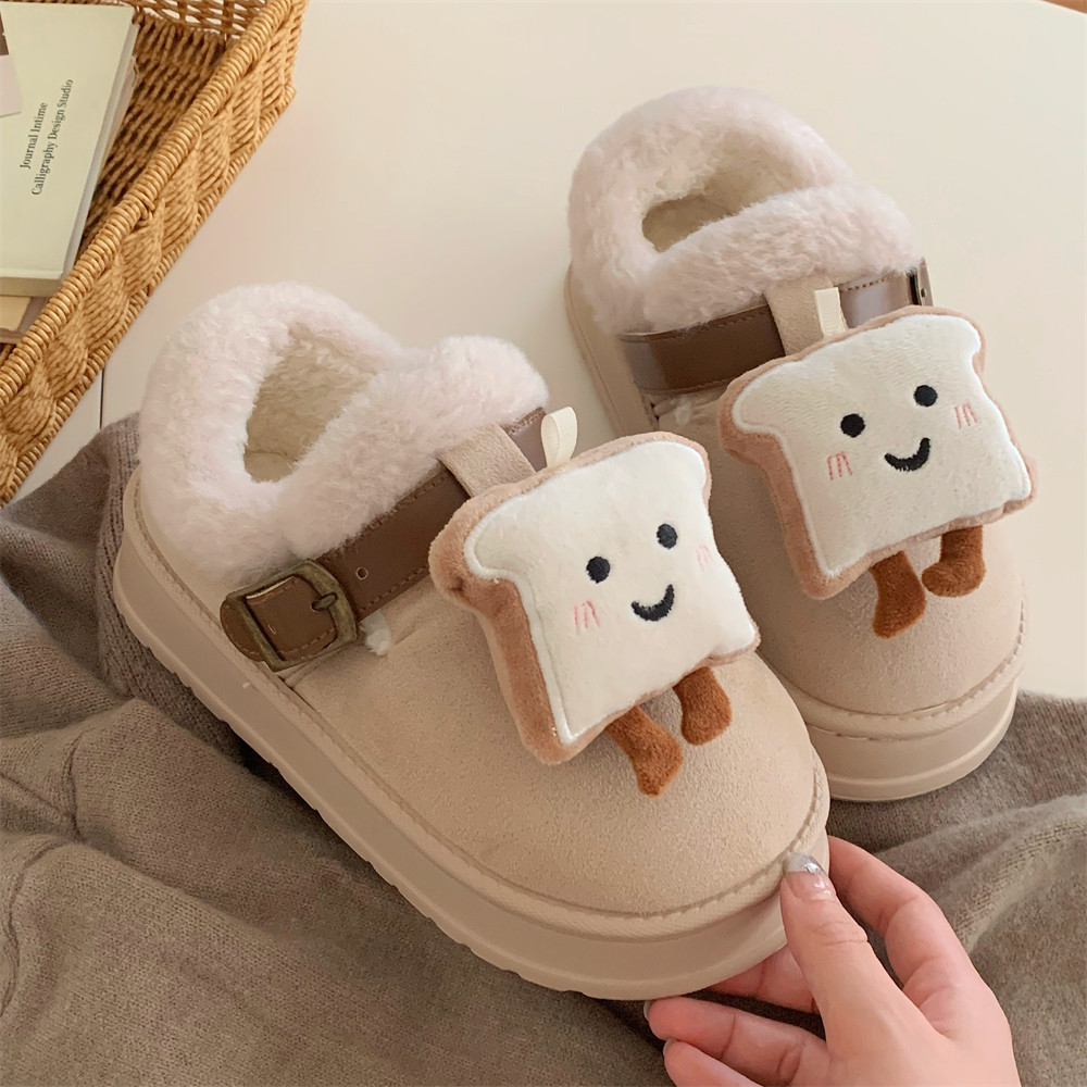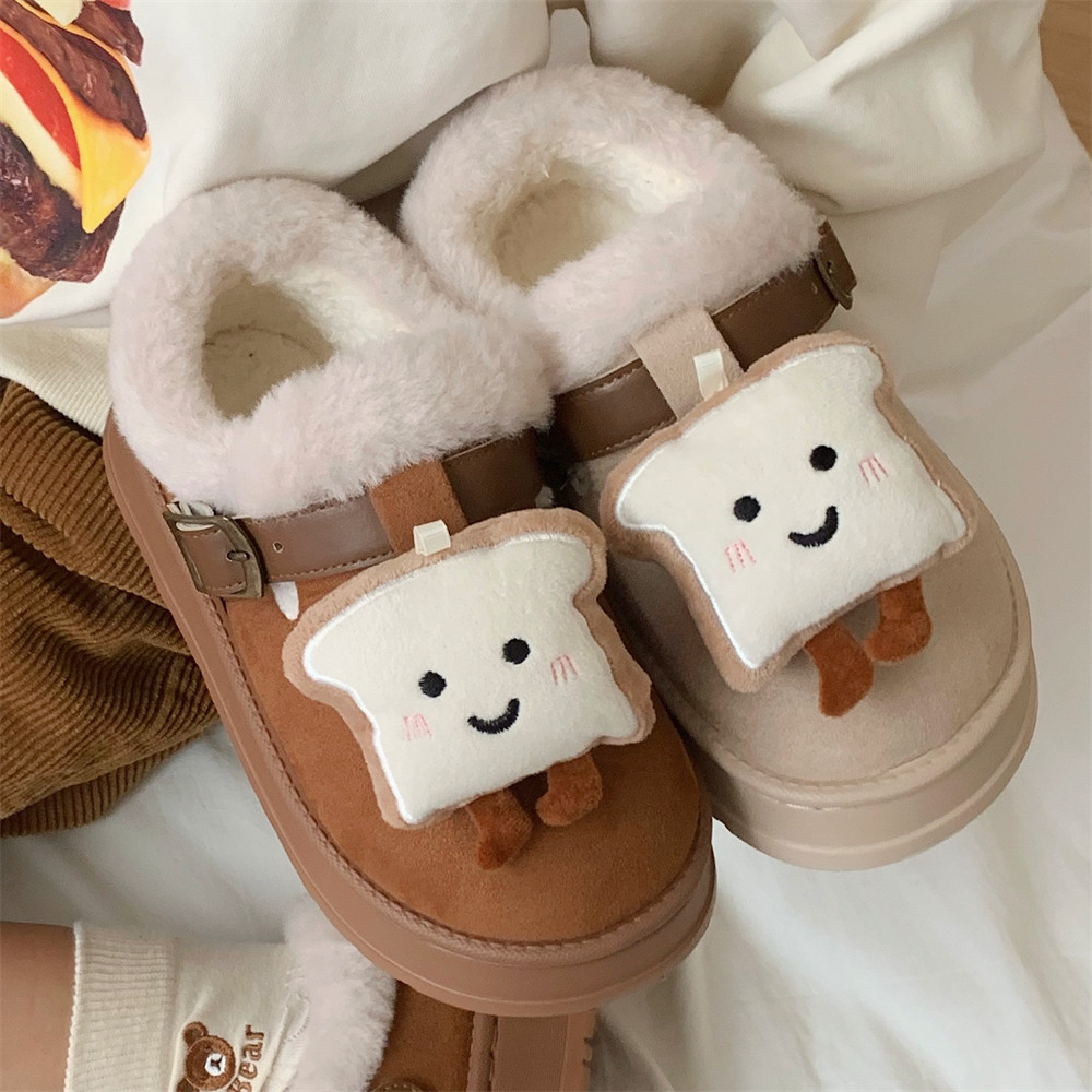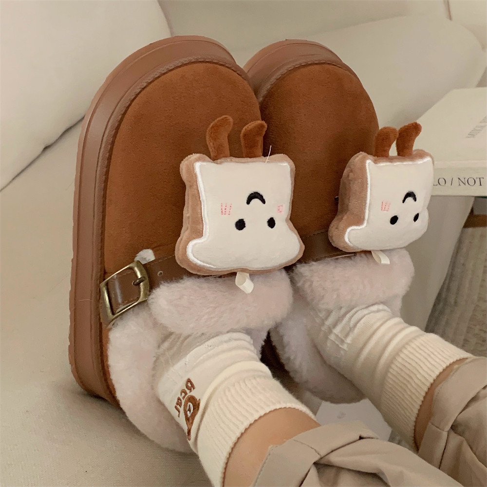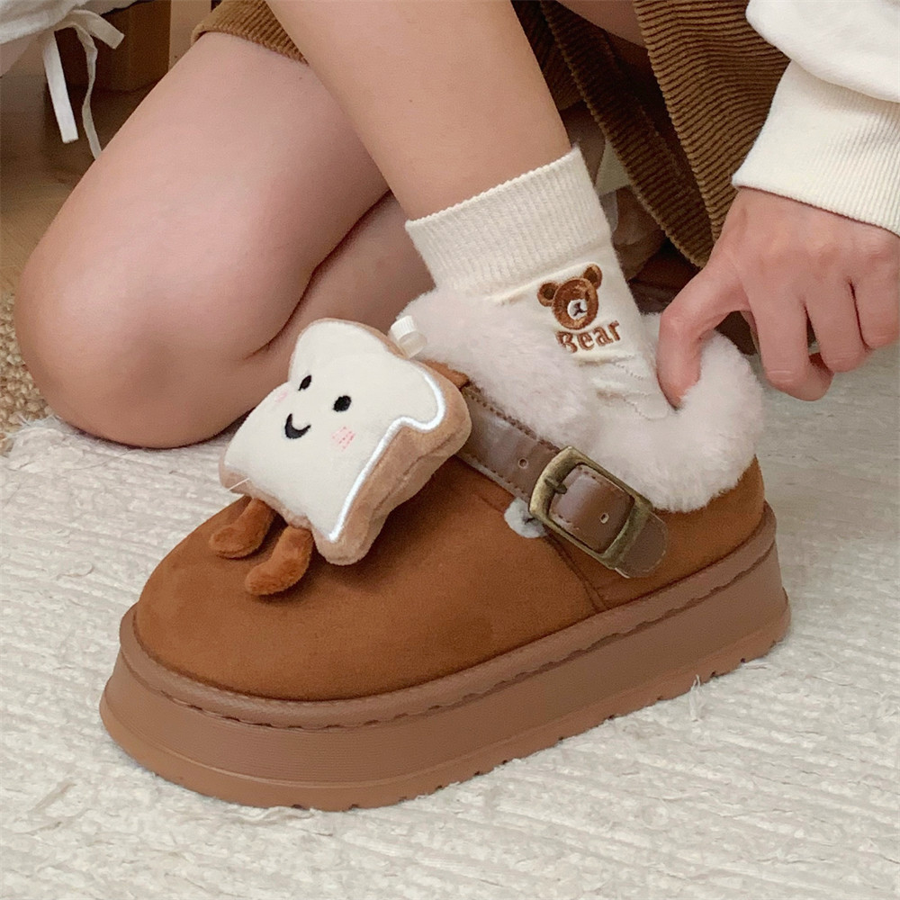 细细条 立体可爱吐司雪地靴冬季少女心外穿保暖加绒勃肯鞋棉鞋女