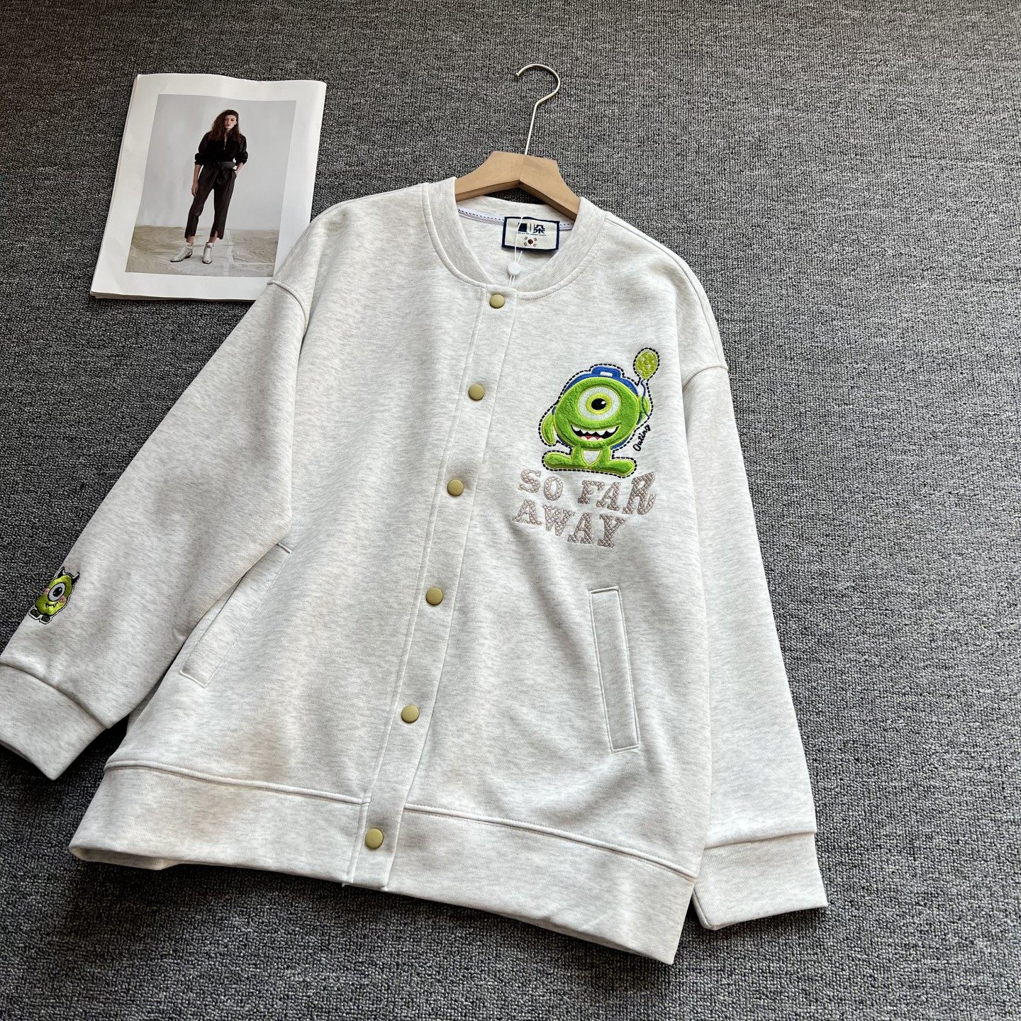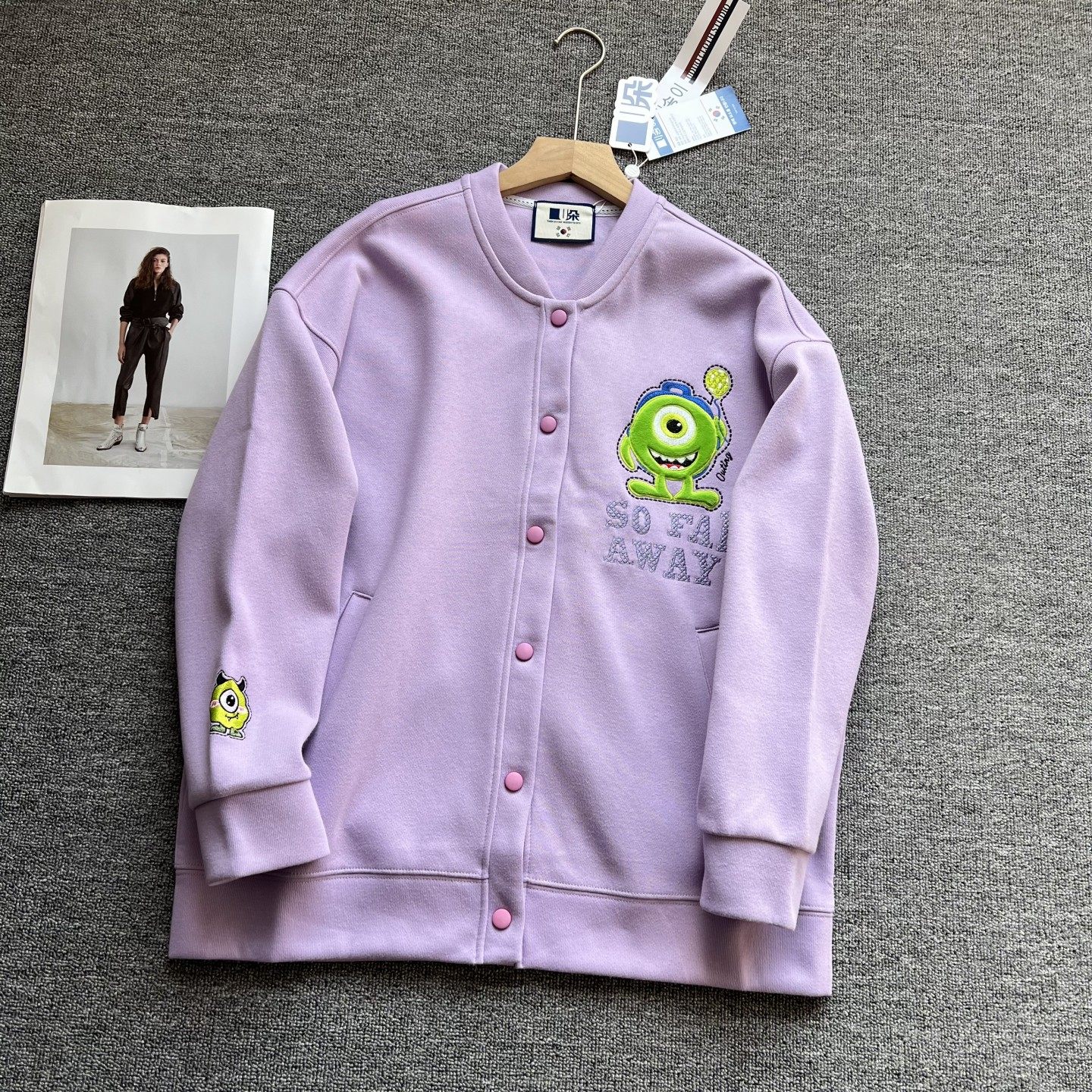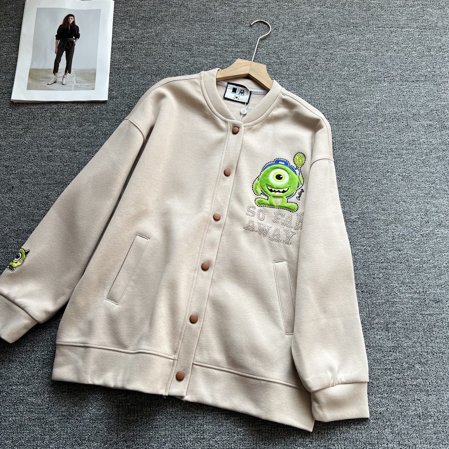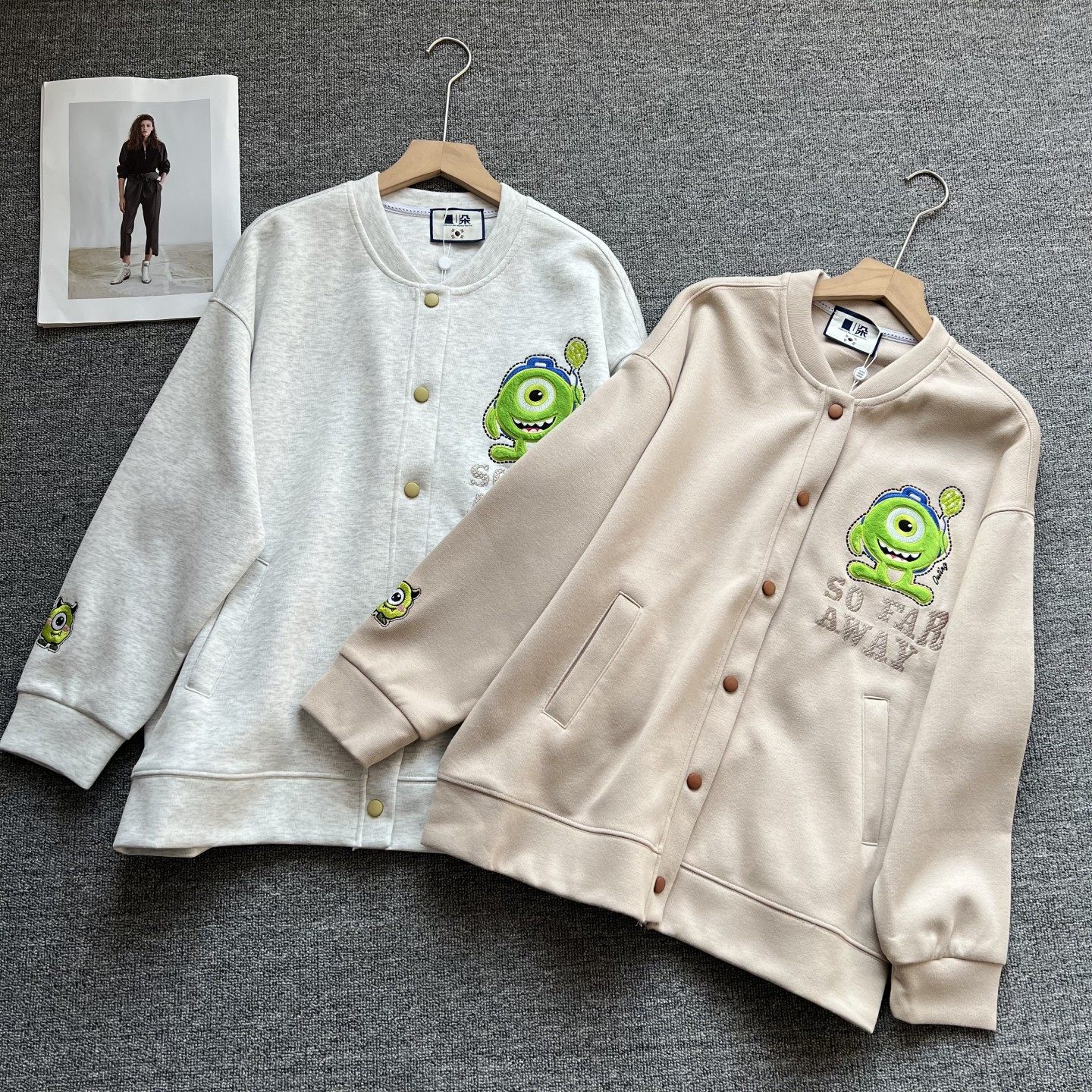 出口韩国单高品质外贸女装春季毛绒卡通外套棒球服小众设计外套