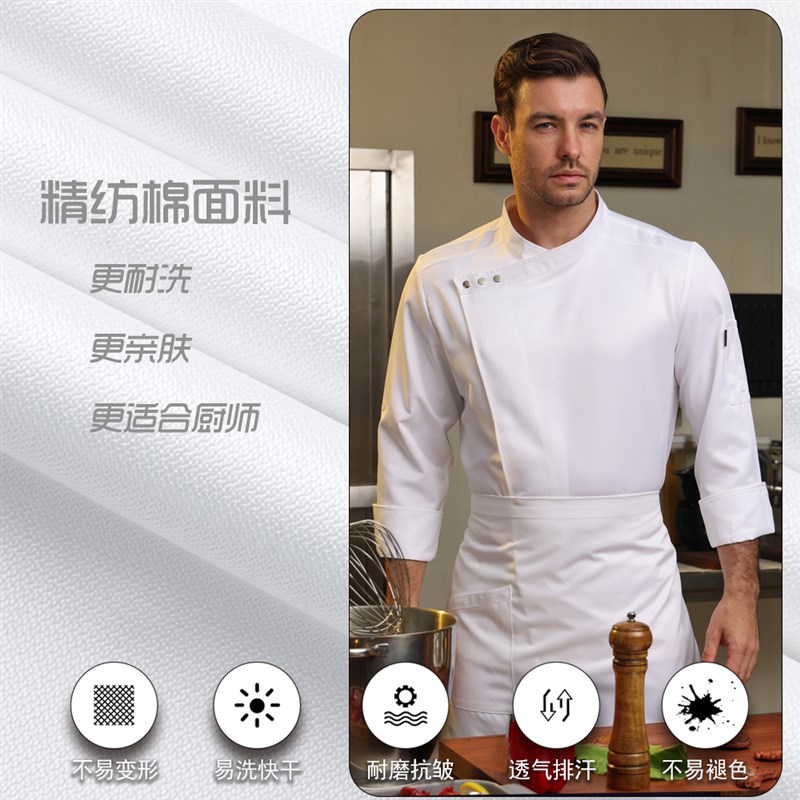 厨师服长袖秋冬厨房后厨餐饮服装高档西餐白色食堂定制厨师工作服