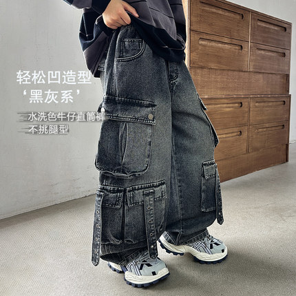 男童牛仔裤2025新款儿童休闲工装长裤中大童春秋季薄款痞帅长裤潮