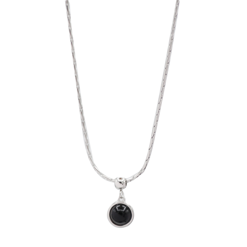 NFF不掉色钛钢项链男锁骨链黑石圆豆轻奢猫眼石吊坠配饰潮蛇骨链