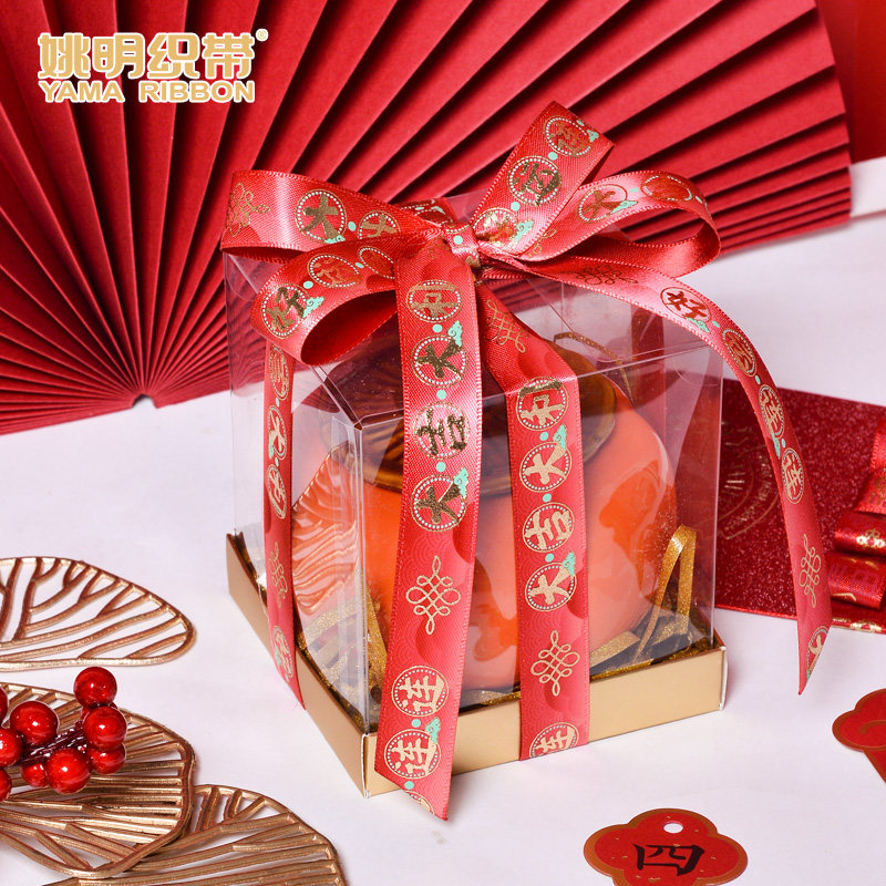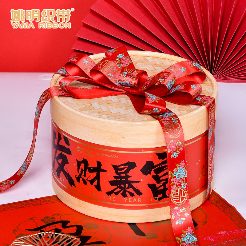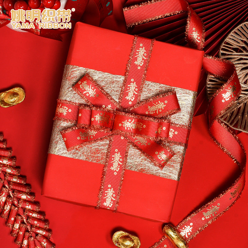 姚明织带2025年喜庆礼品包装彩带新年春节装饰中国风红色丝带91米