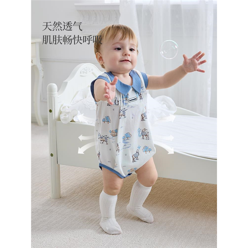 Domiamia新生儿包屁衣春夏季婴儿衣服夏天薄款男宝宝背心连体衣