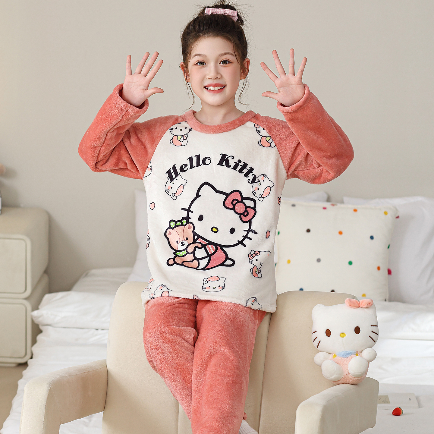 女童法兰绒睡衣可爱库洛米小女孩宝宝秋冬天保暖高端珊瑚绒家居服