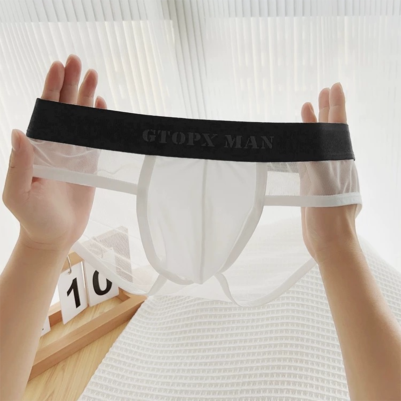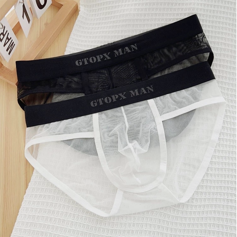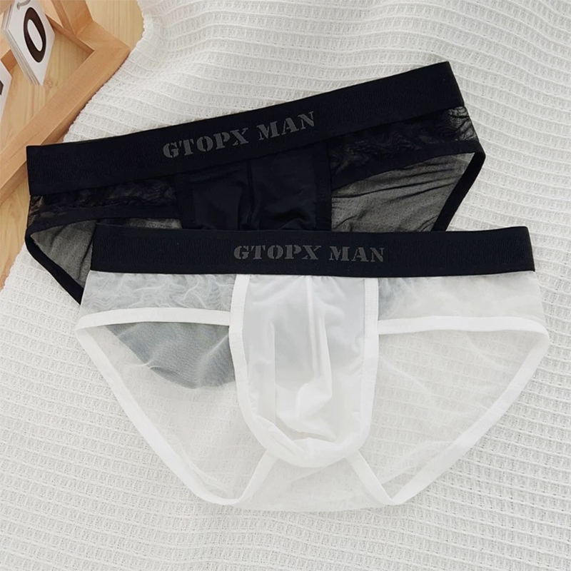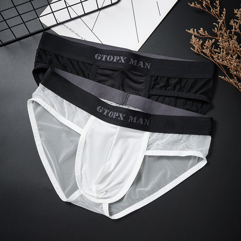 男士冰丝内裤三角裤透明性感网纱