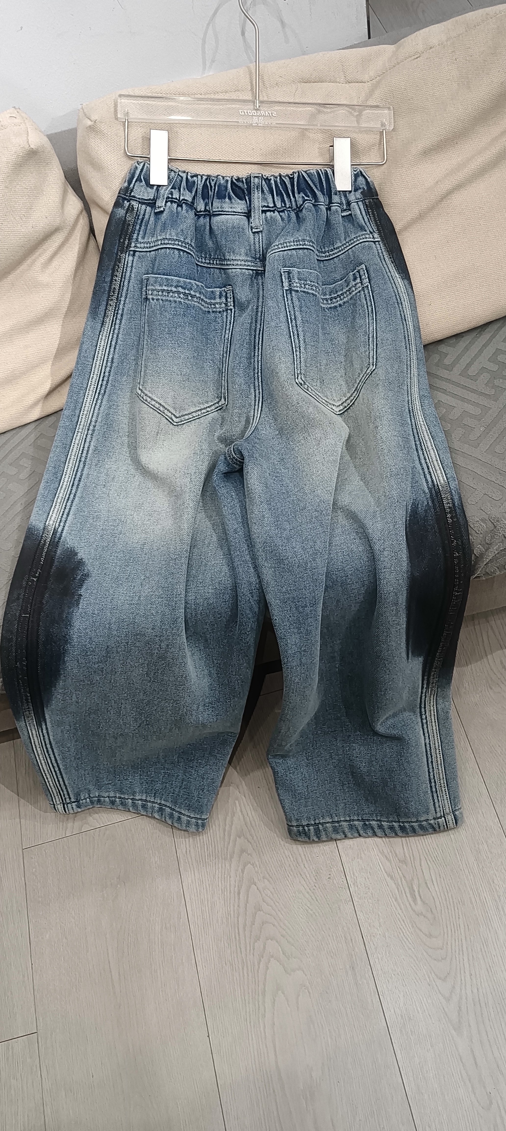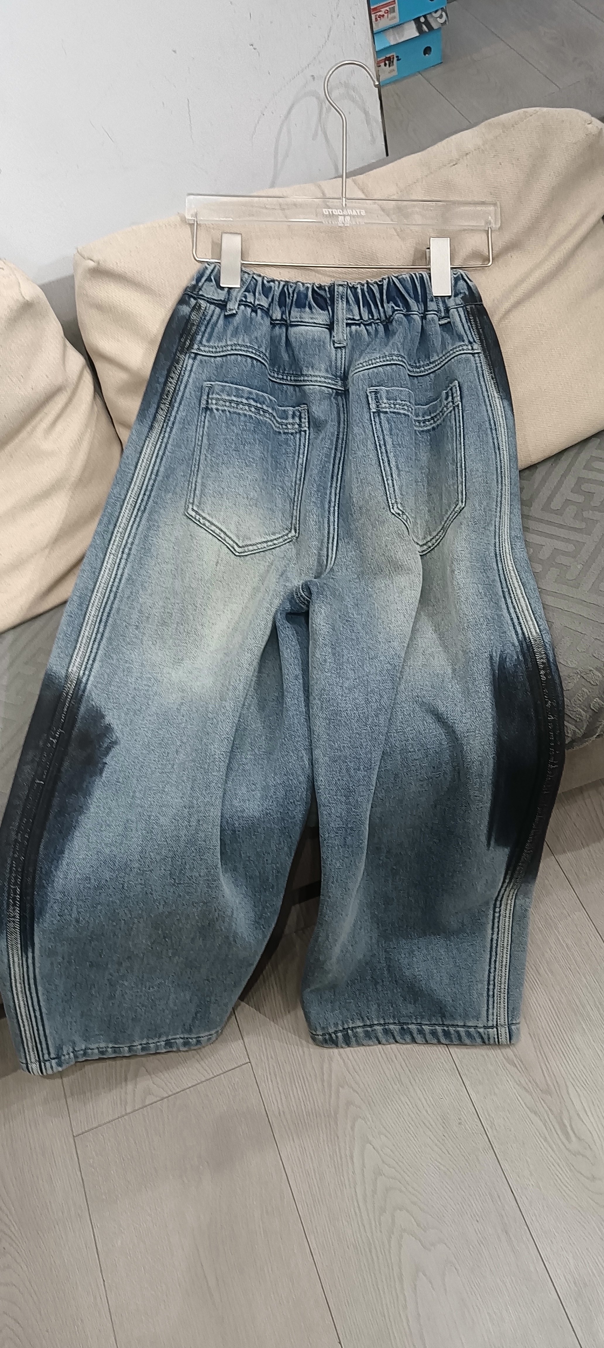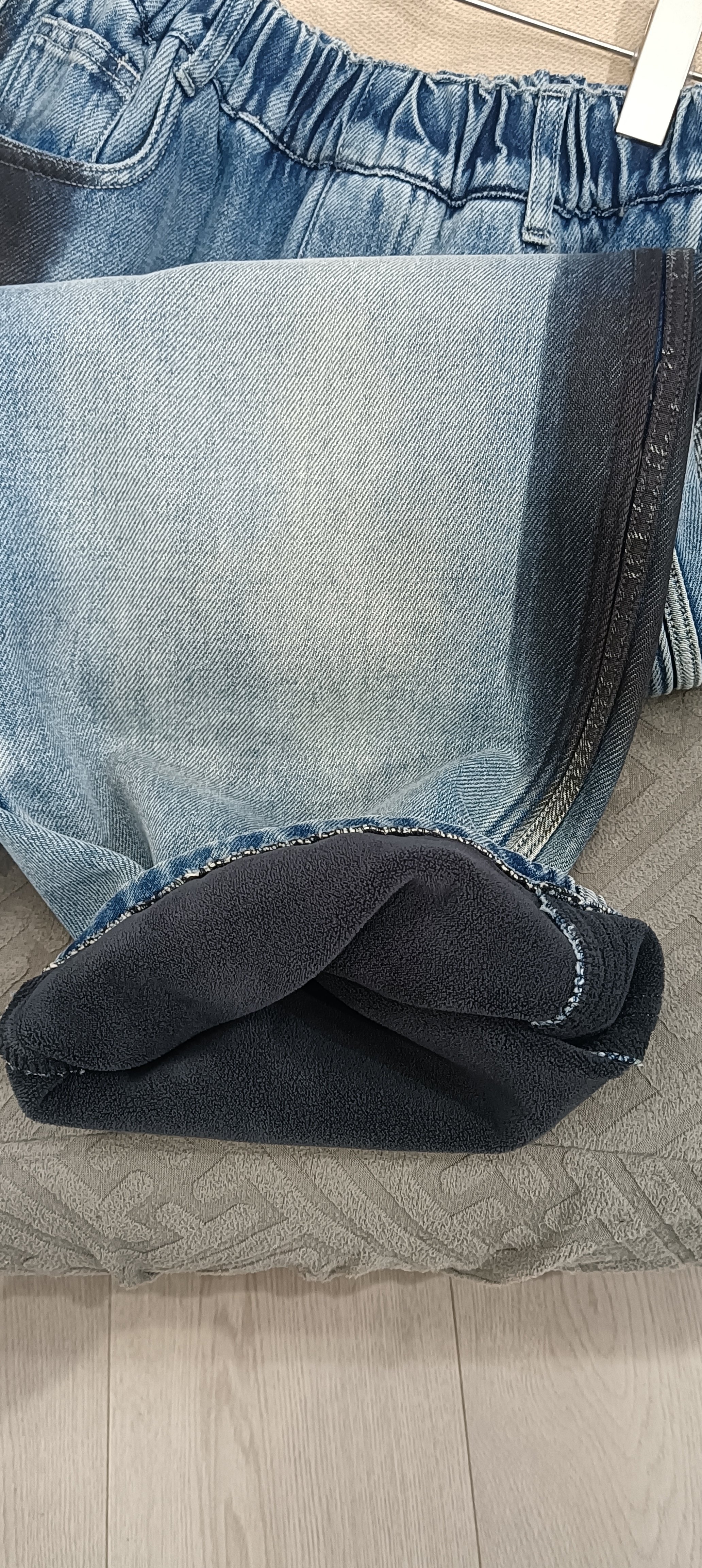 美式弯刀牛仔裤男士秋冬宽松直筒冬季加绒加厚青少年休闲裤子男款