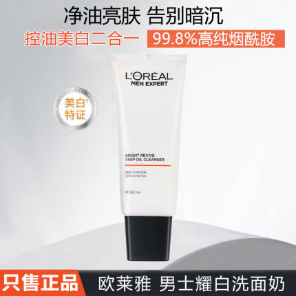 正品欧莱雅男士耀白净油美白洗面奶洁面乳烟酰胺提亮肤色深层清洁