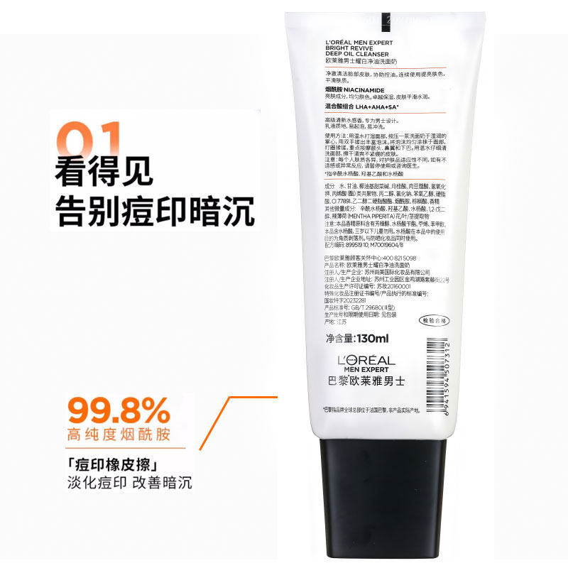欧莱雅男士耀白洗面奶美白淡印