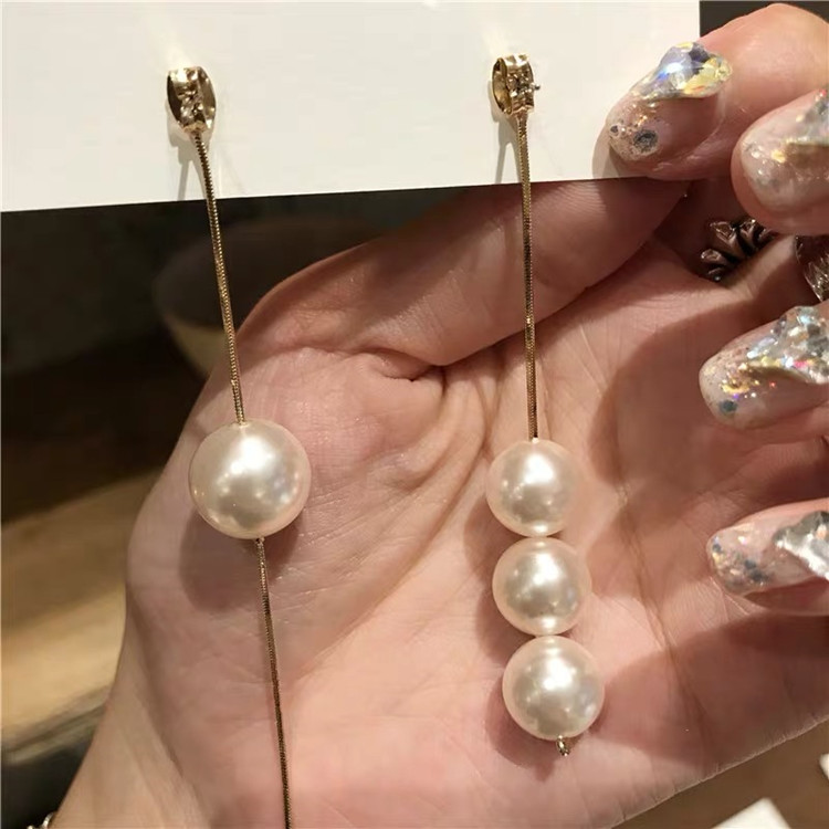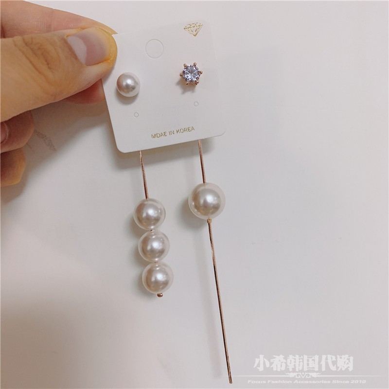 韩国东大门代购耳饰女新款时尚串珠锆石耳钉AB不对称耳环百搭耳坠