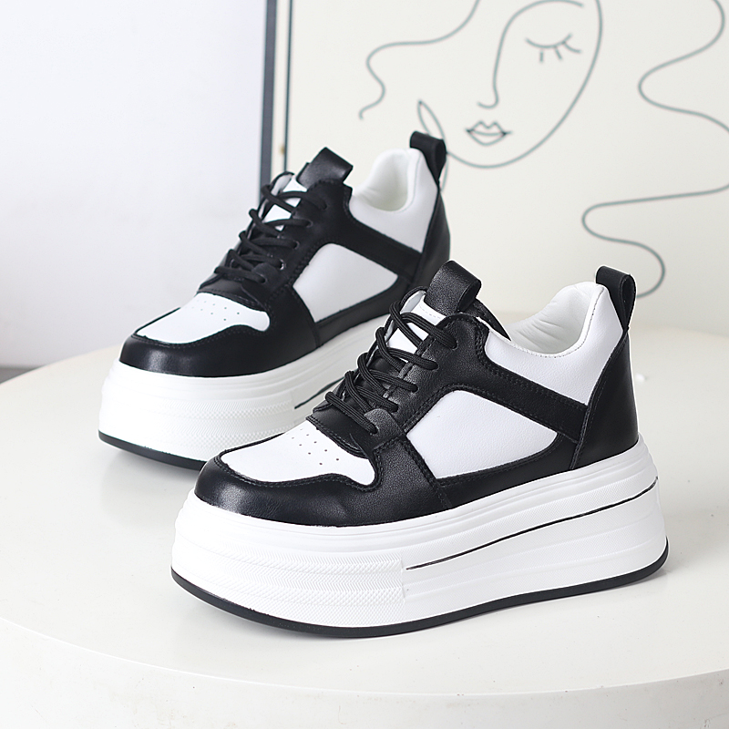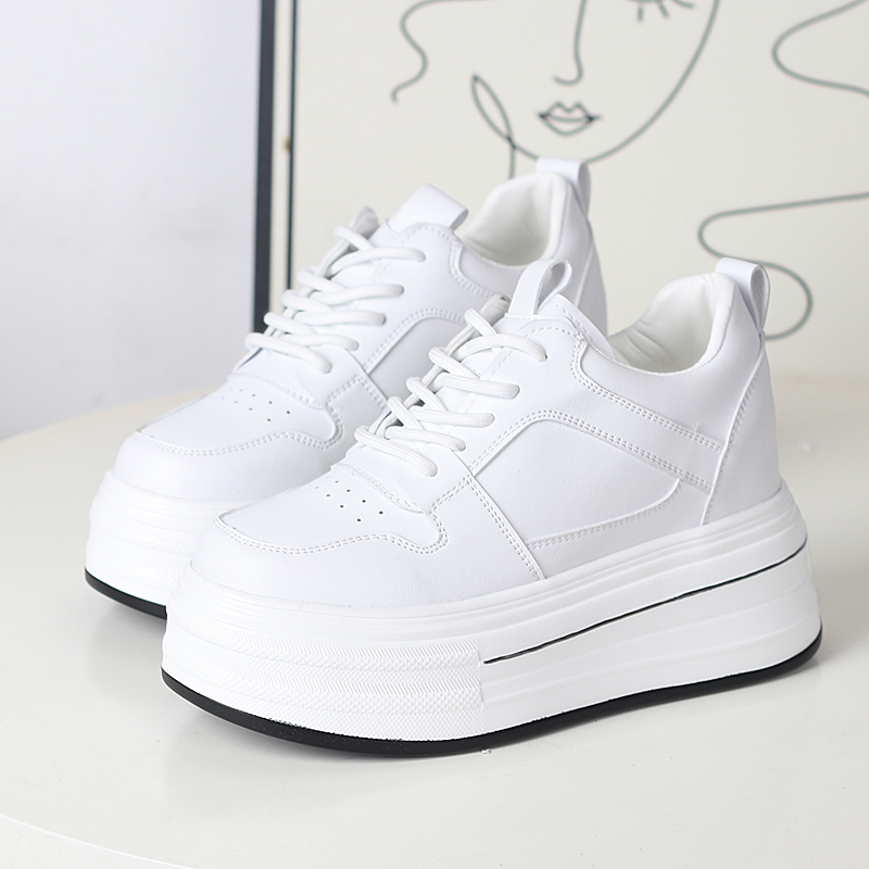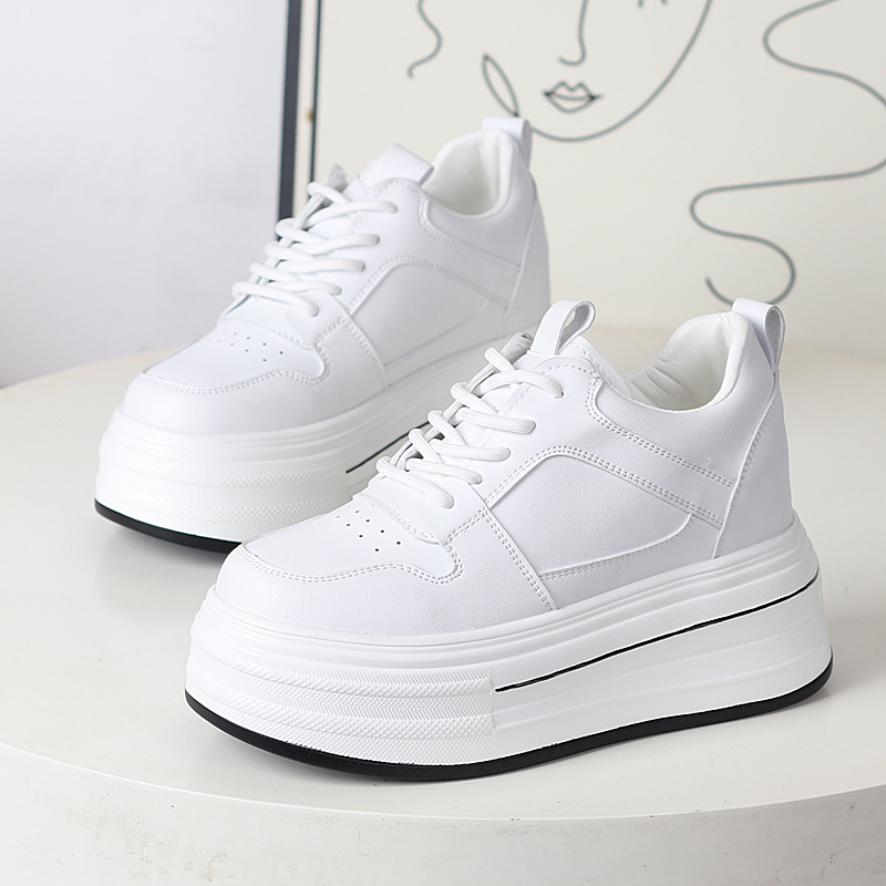 厚底松糕系带小白鞋2024秋内增高8CM皮面小个子显瘦休闲运动单鞋