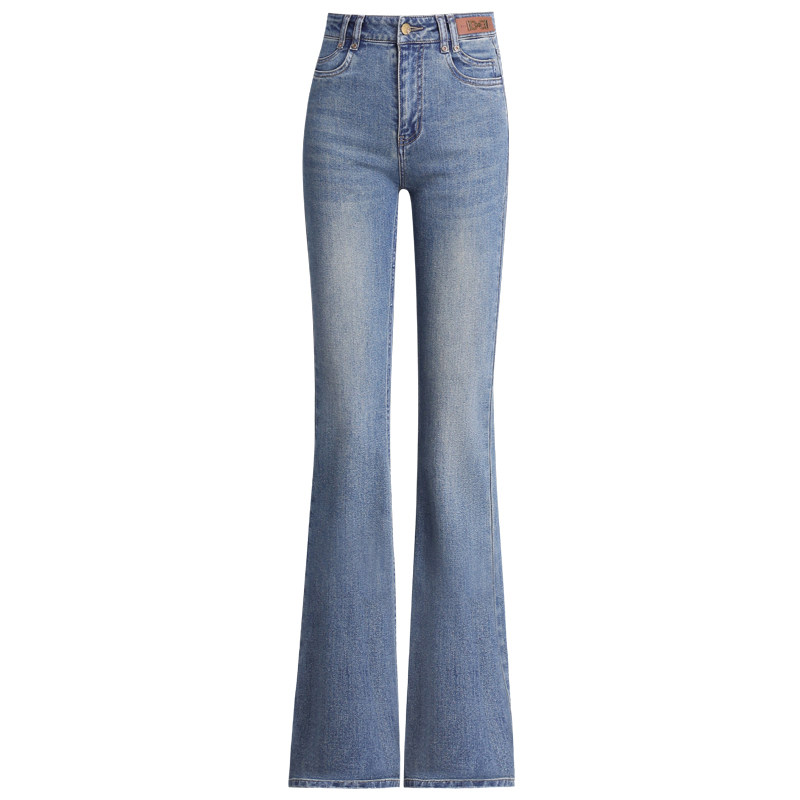 逸阳女裤秋冬装牛仔裤2025新款品牌时尚显瘦高腰百搭加绒微喇长裤