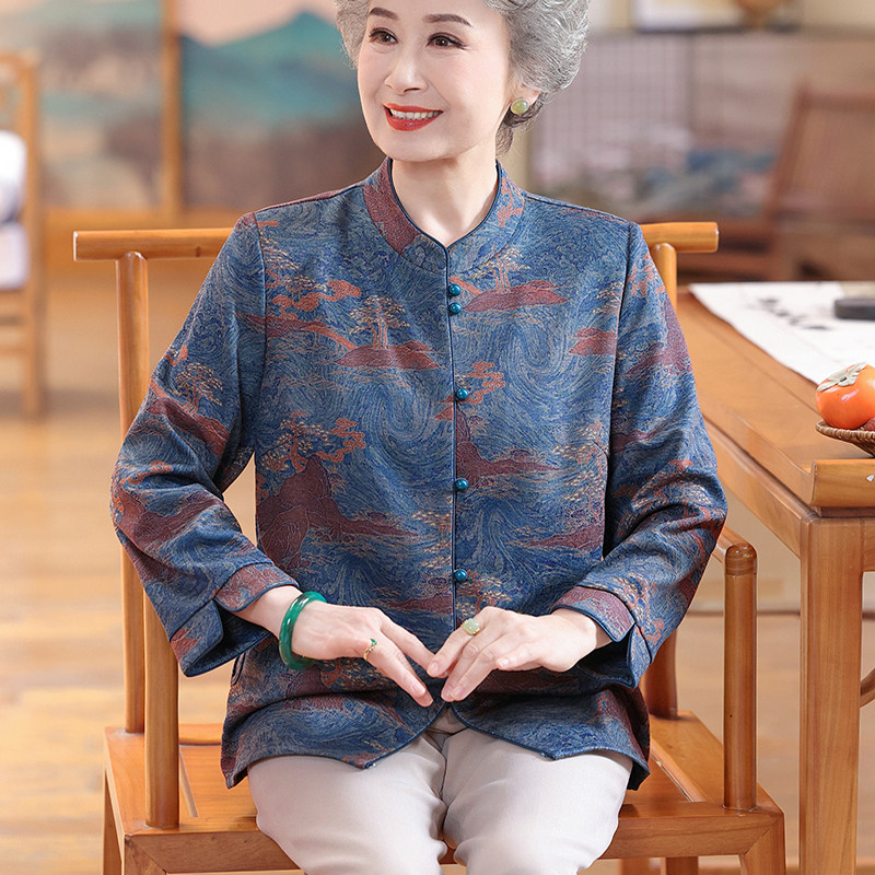 中年妈妈装秋季高端开衫外套2025新款中老年人奶奶装长袖宽松上衣