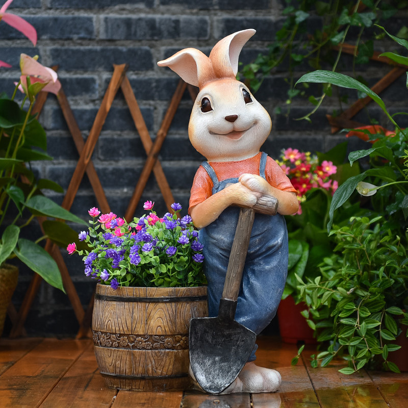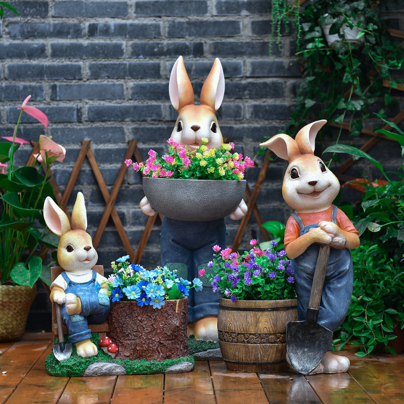 户外庭院阳台造景小兔子花园布置装饰品创意动物树脂花盆落地摆件