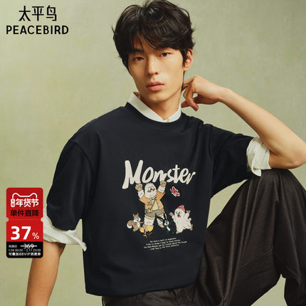 【艺术家系列】太平鸟男装圆领刺绣T恤夏新款时尚印花重磅短袖潮S
