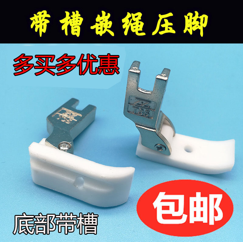 智足T35/T69L塑料绳子嵌线压脚拉绳压脚平车带槽嵌线压脚白色底板