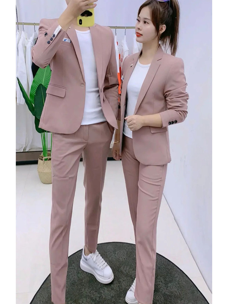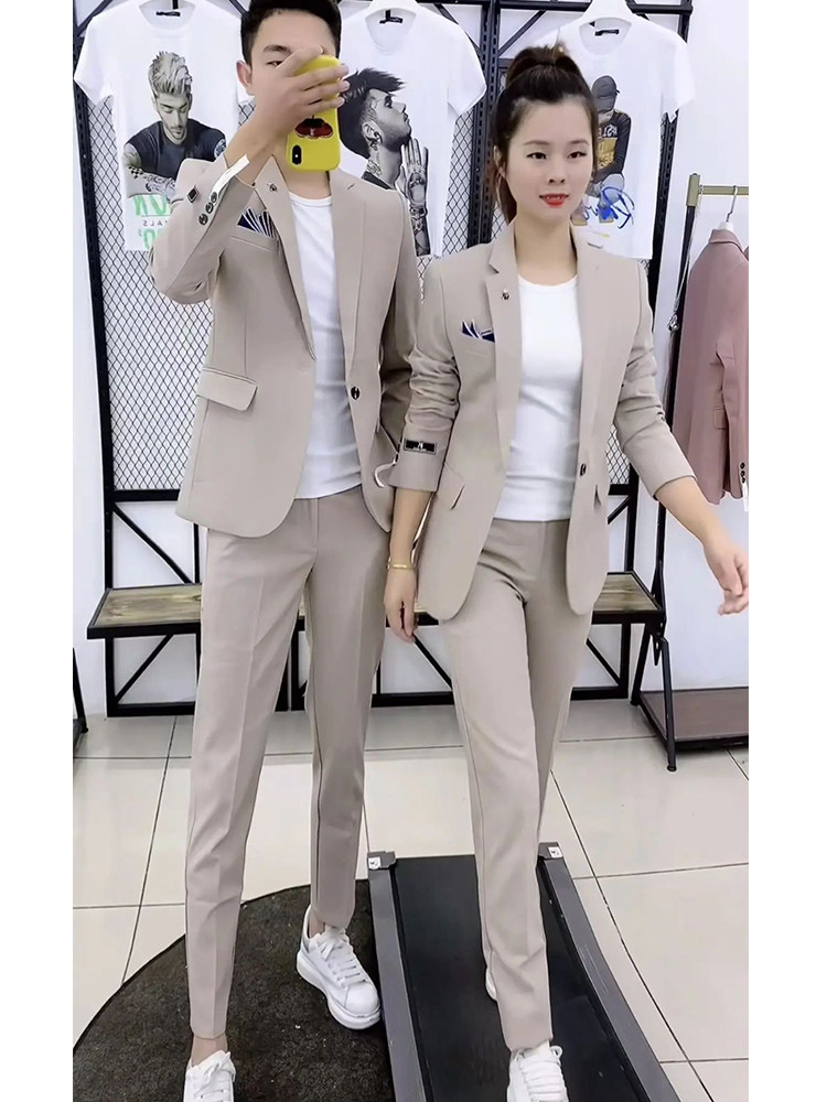 韩版新款西服男套装修身潮流社会小伙外套纯色发型师西装男两件套
