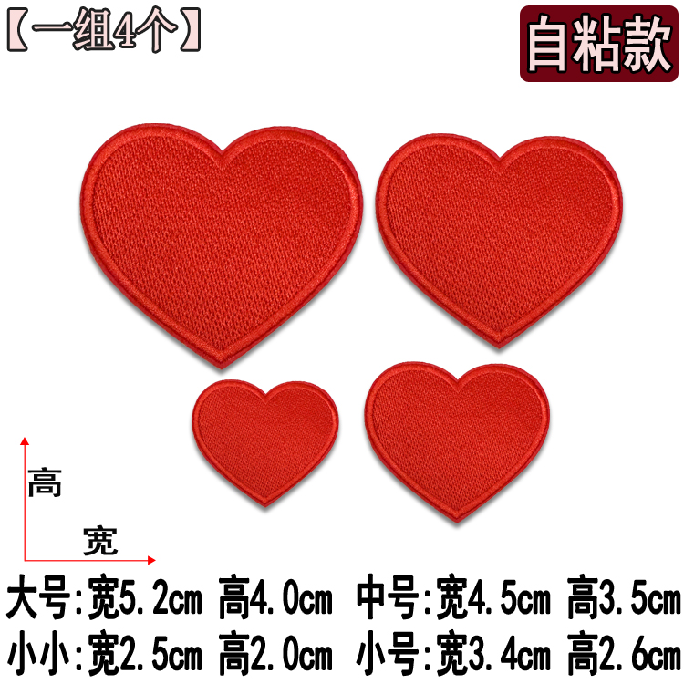 小号自粘爱心布贴衣服裤子修补破洞刺绣桃心贴花羽绒服修补补丁贴