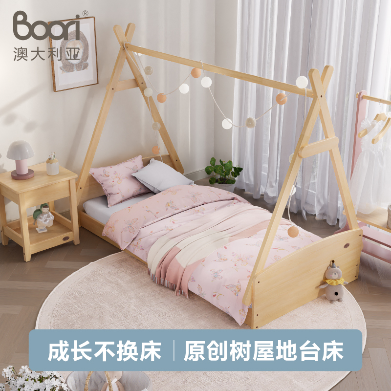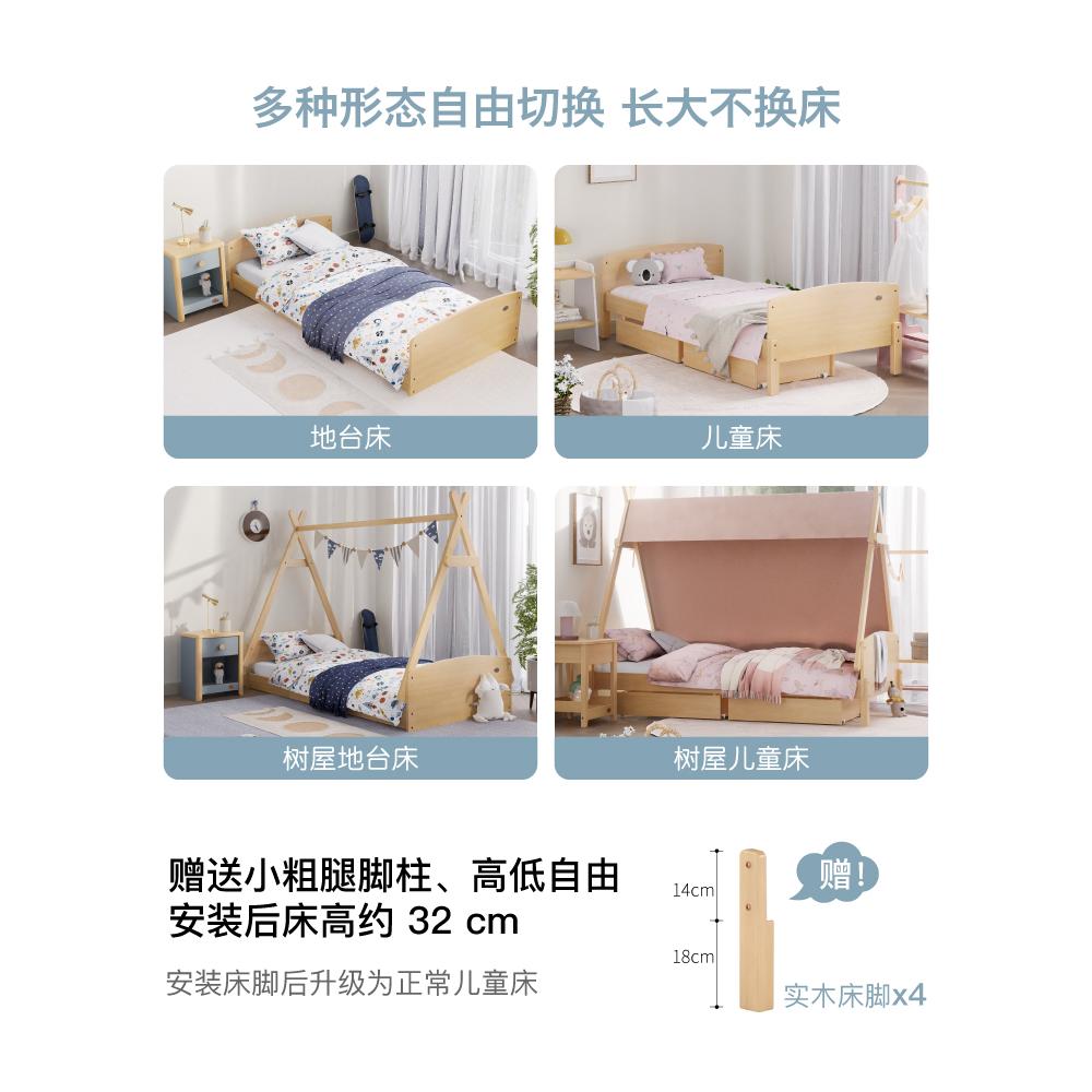 Boori蒙氏地板床地台床实木儿童床多功能榻榻米落屋床简约单人床
