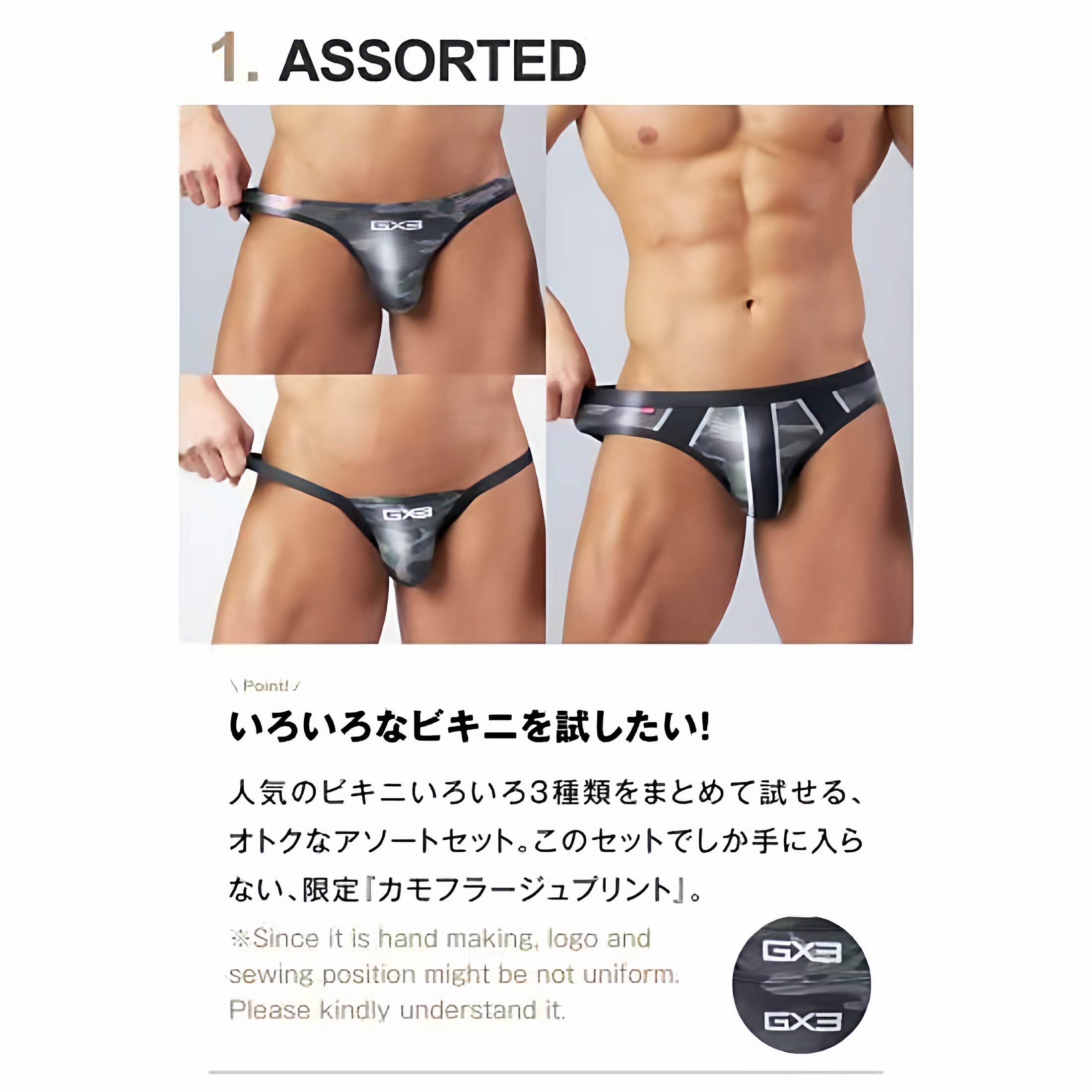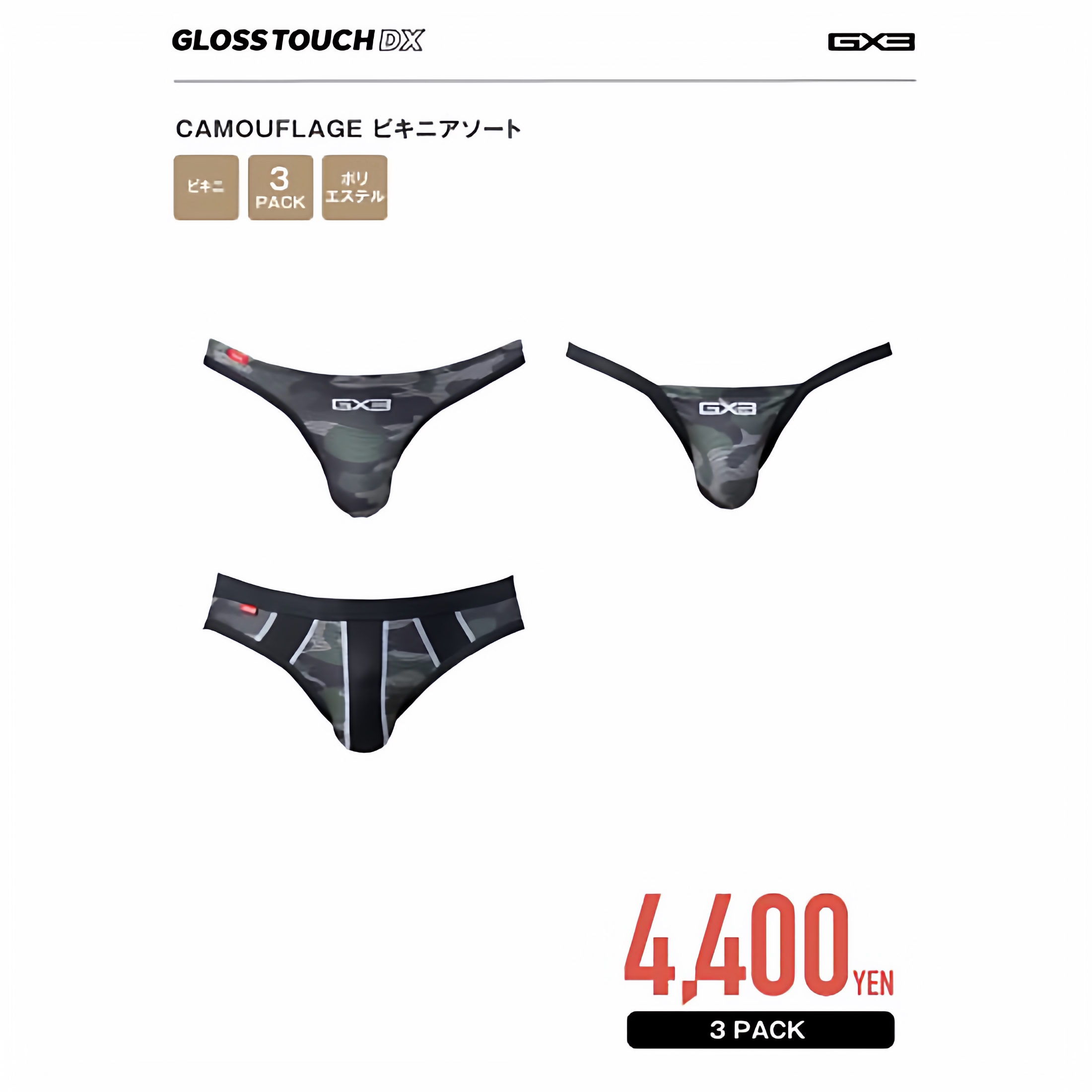GX3男士内裤迷彩激情野性弹力U凸囊袋透气健身运动三角一条装