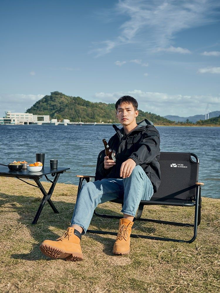 牧高笛黑化露营可折叠双人椅便携铝合金kermit亲子克米特椅云暮