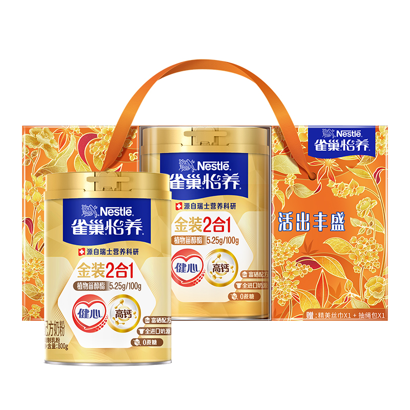 雀巢怡养中老年奶粉金装健心瑞骼成人高钙营养奶粉800克礼盒